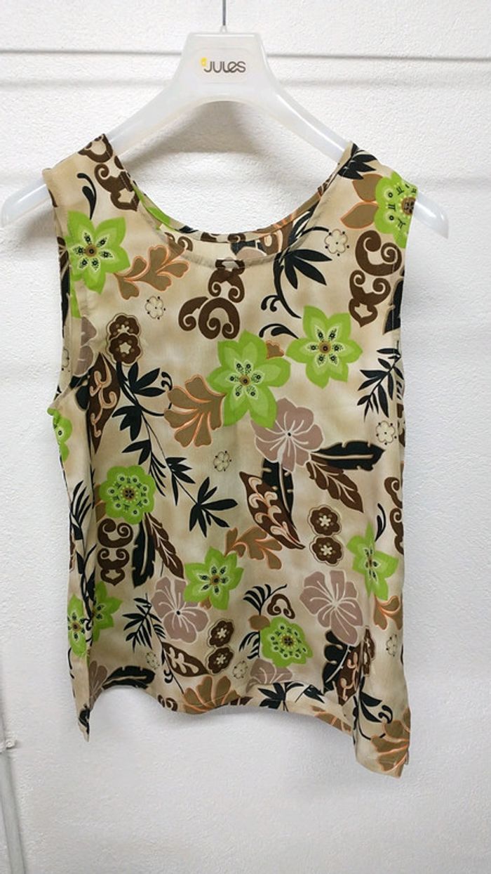T-shirt sans manches taille M motif imprimé feuilles et fleurs - photo numéro 1