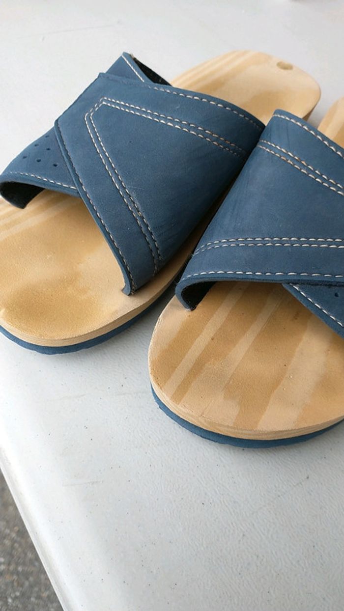 Paire de sandales imitation bois taille 36 coloris bleu