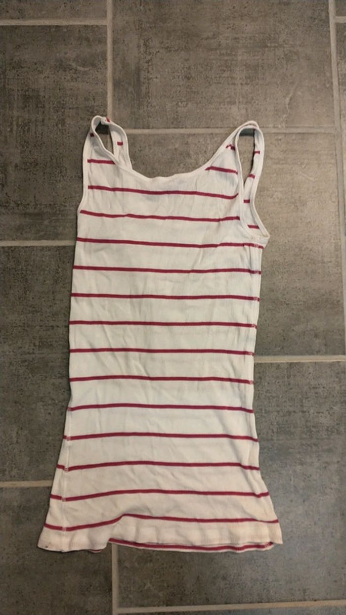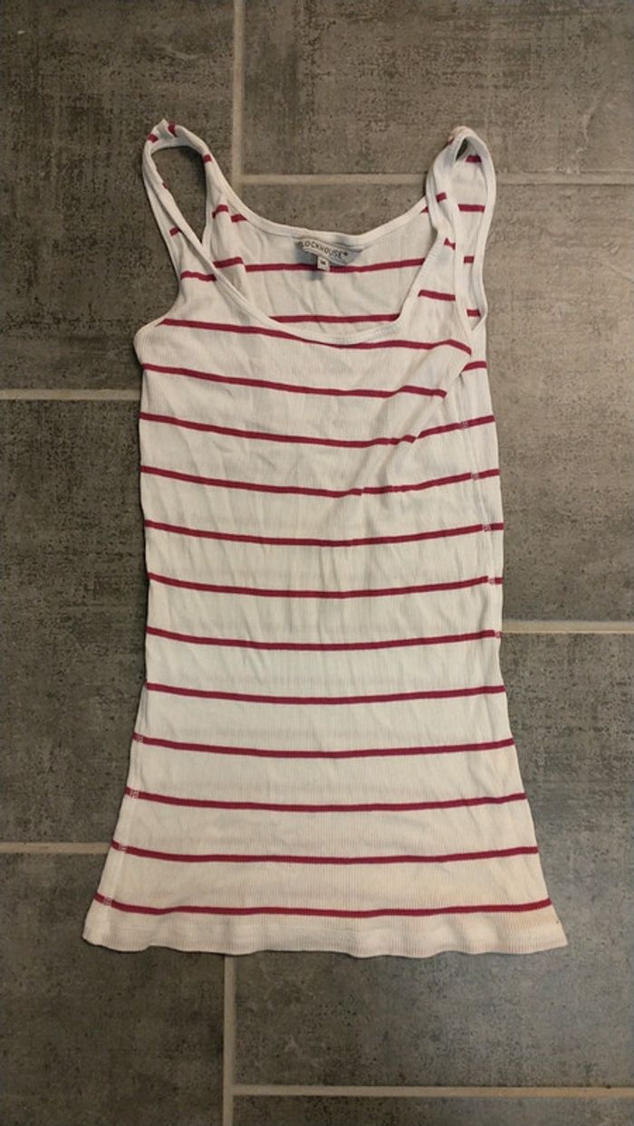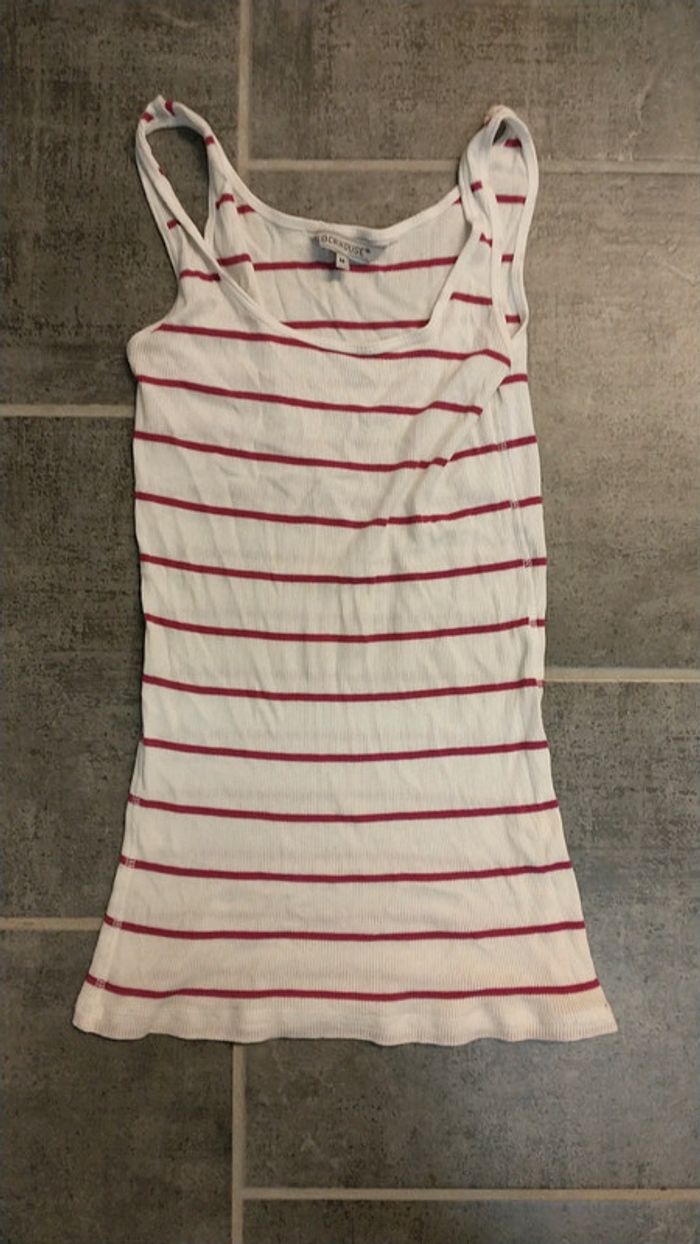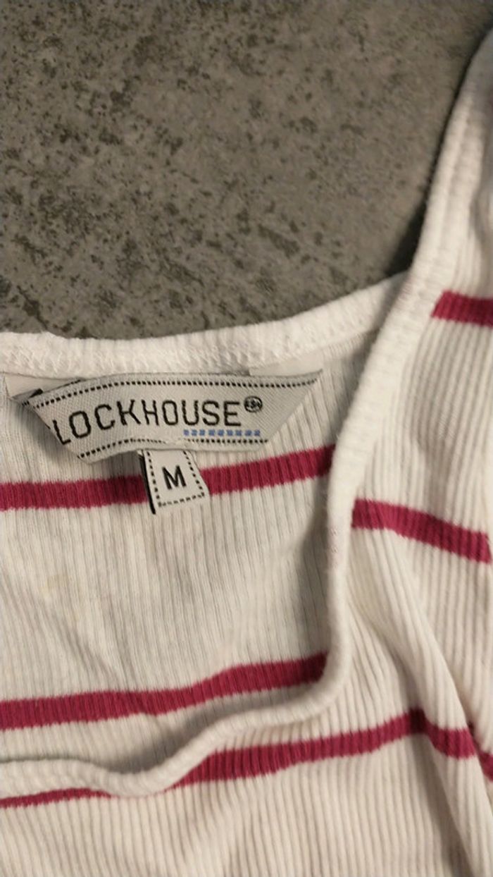 Top clockhouse rayé coloris blanc et rose taille M.