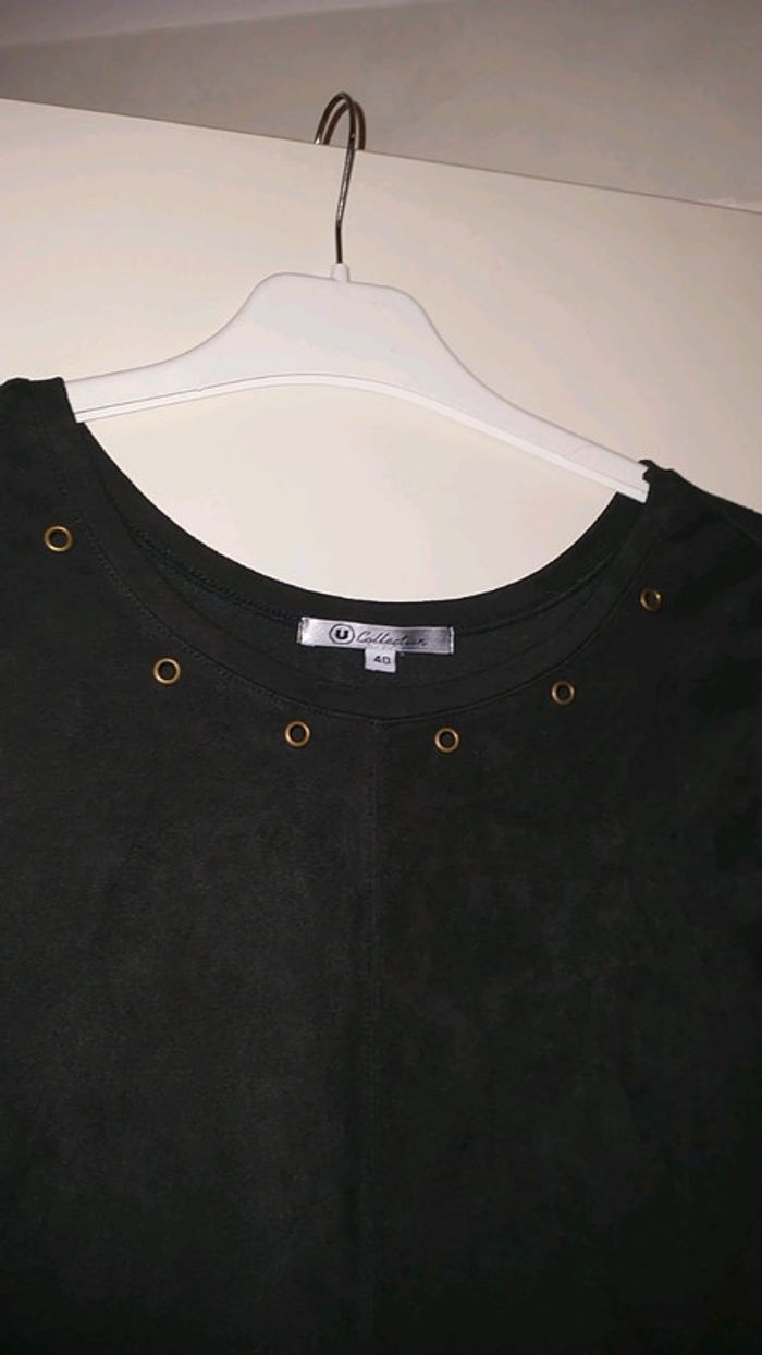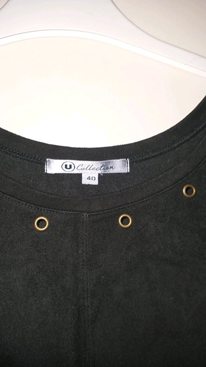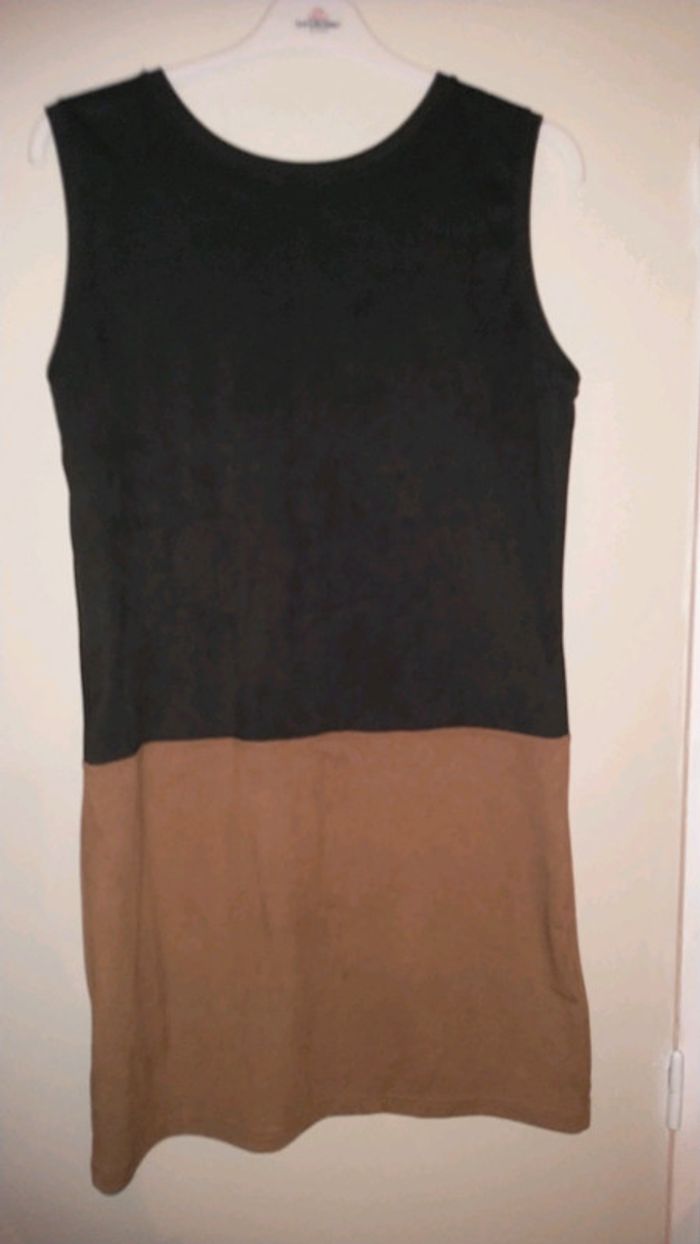 Jolie robe noire et brune taille 40 matière imitation peau de chamois