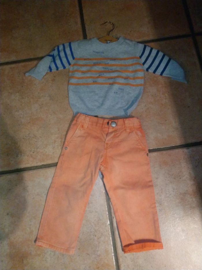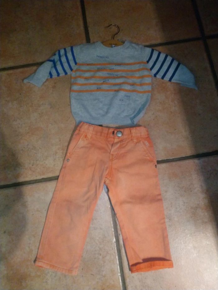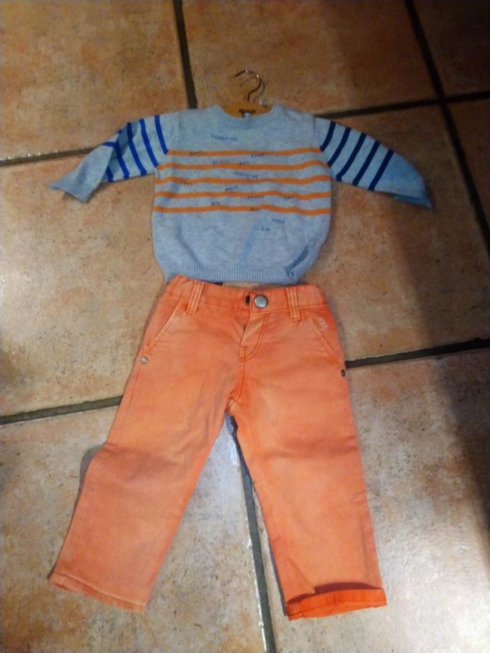 Joli pull gris et orange IKKS 12 mois En très bon état #ikks #ikks12mois #ikksgarcon12mois #lililesyeuxbleus12mois