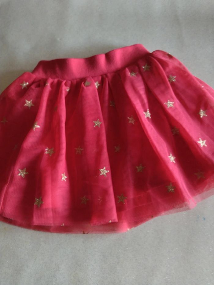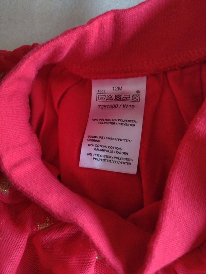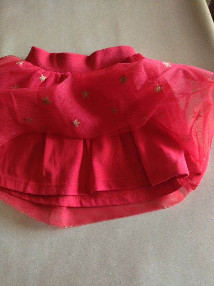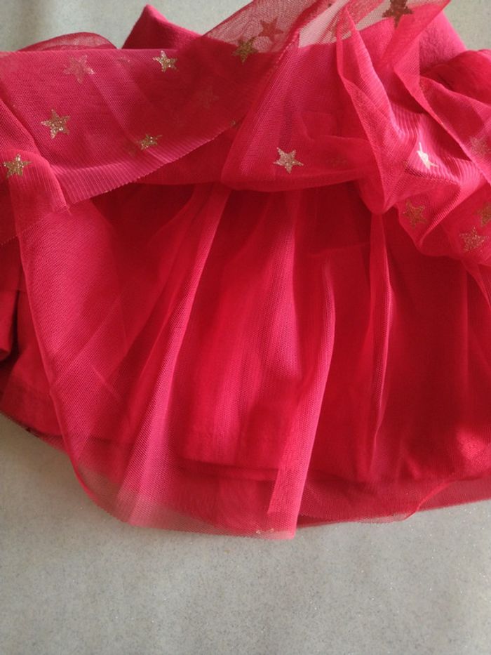 Jupe 3 épaisseur rouge coton, rouge tulle et rouge tulle étoile or. Très bon état. Taille 12/18 mois
