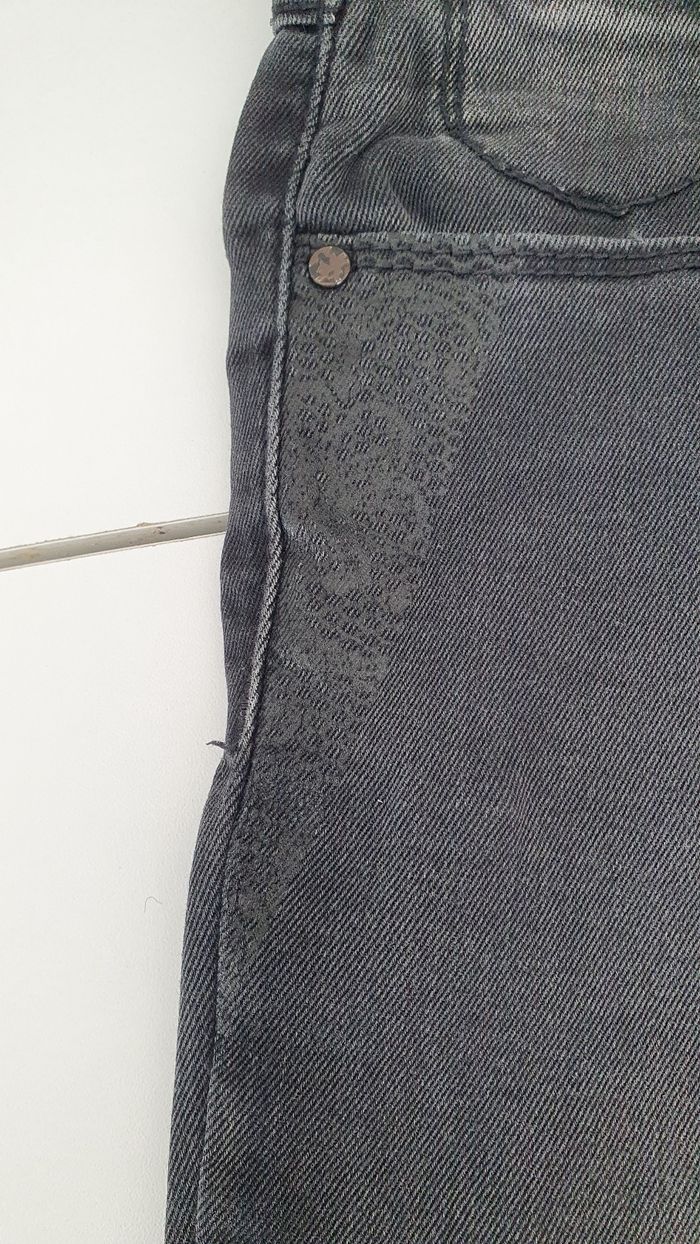 Jean gris foncé, effet dentelle sur les poches, voir photo