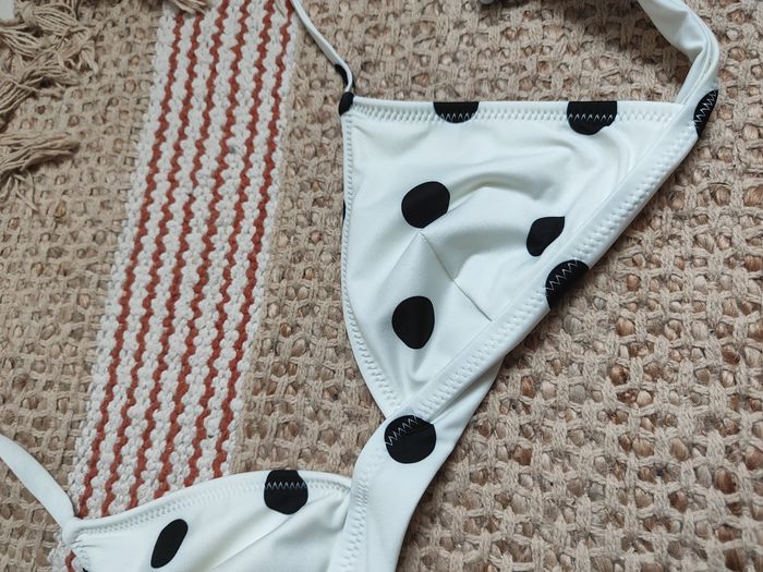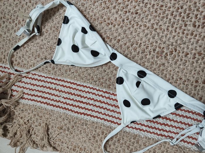 Haut maillot de bain bikini Etam à pois crème et noir Taille S 85B Très bon état Sans armatures