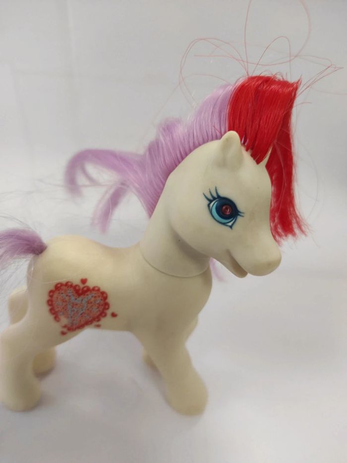 My little pony g2 Secret tale yeux  ok Crins  ok un peu rêches Je trouve le plastique grisâtre Manque un peu de peinture au niveau des cuties mark Quelques traces à nettoyer Marque Hasbro  Compléments de description:  L'objet est exactement comme sur les photos, vous achetez ce que vous voyez les photos font entièrement partie de la description.  Les crins sont de la longueur que vous voyez il peuvent potentiellement être écourtés  Petit nettoyage à prévoir  Pour plus d'informations vous pouvez me contacter directement je vous répondrais avec plaisir  Transport :  Les frais de port comprennent les frais du transporteur, le carton et le calage nécessaire à la bonne réception de votre colis.  Envoi sous format de colis  Envoi avec numéro de suivis systématique Achat multiple:  Plusieurs poneys peuvent être mis dans un même carton ( poids finit du colis 500g), contactez moi avant d'acheter afin de grouper les frais de port  Référencement :   My little pony g2 Mon petit poney g2 Jouet ancien / vintage / collection / occasion #geektradeponeyg2 #mylittlepony #monpetitponey #poney #hasbro #vintage #ancien #collection #collectionneur #cheval #poneyg2 #ponyg2 #jouetancien #mlp #jouetfille #fille #enfant #jouet #poupée #poneyàcoiffer  Mein kleines pony Mi pequeno pony