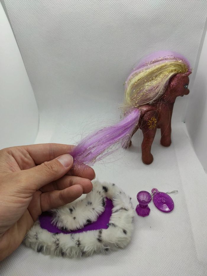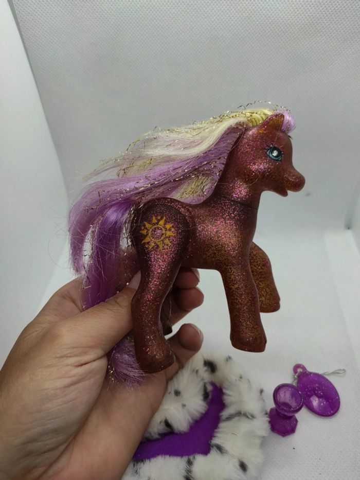 My little pony g2 Queen sunsparkle Bel état global  vendu avec tous les accessoires en photo Crin un peu rêches   , les diamants des yeux sont ok , la cutie mark ok Poney a nettoyer je t Scratch de la cape ok Nettoyage plus en détail a prévoir Marque Hasbro  Complément description:  L'objet est exactement comme sur les photos, vous achetez ce que vous voyez les photos font entièrement partie de la description.  Les crins sont de la longueur que vous voyez il peuvent potentiellement être écourtés  Petit nettoyage à prévoir  Pour plus d'informations vous pouvez me contacter directement je vous répondrais avec plaisir  Transport :  Les frais de port comprennent les frais du transporteur, le carton et le calage nécessaire à la bonne réception de votre colis.  Envoi sous format de colis  Envoi avec numéro de suivis systématique Achat multiple:  Plusieurs poneys peuvent être mis dans un même carton ( poids finit du colis 500g), contactez moi avant d'acheter afin de grouper les frais de port  Référencement :   My little pony g2 Mon petit poney g2 Jouet ancien / vintage / collection / occasion #geektradeponeyg2 #mylittlepony #monpetitponey #poney #hasbro #vintage #ancien #collection #collectionneur #cheval #poneyg2 #ponyg2 #jouetancien #mlp #jouetfille #fille #enfant #jouet #poupée #poneyàcoiffer  Mein kleines pony Mi pequeno pony