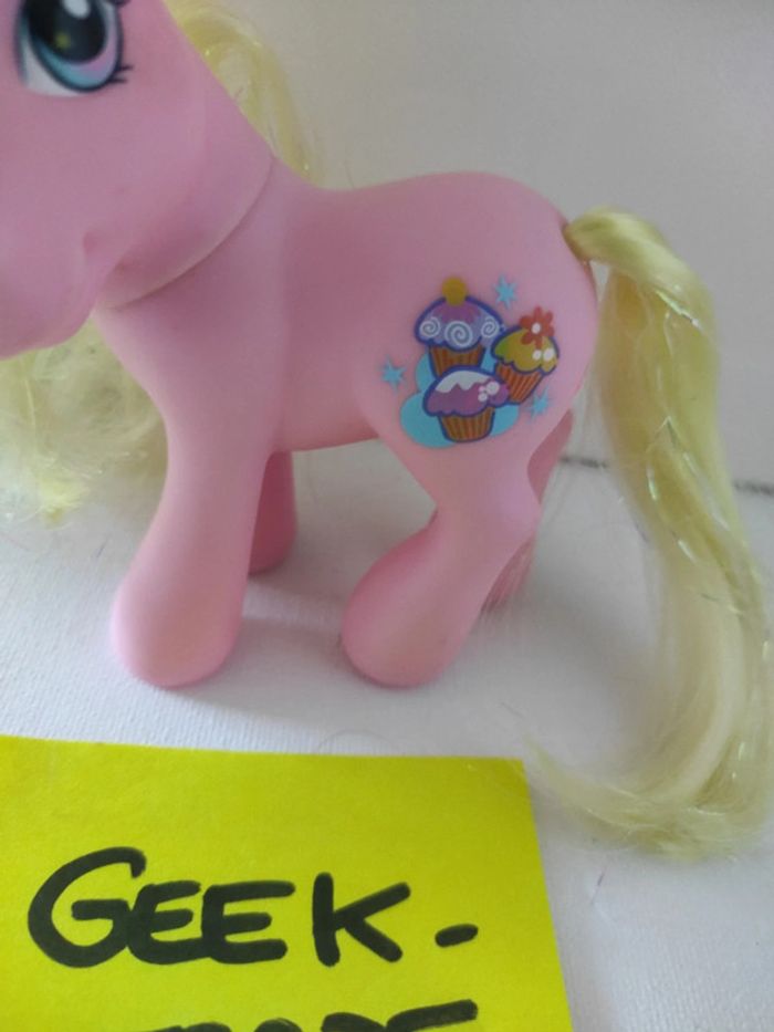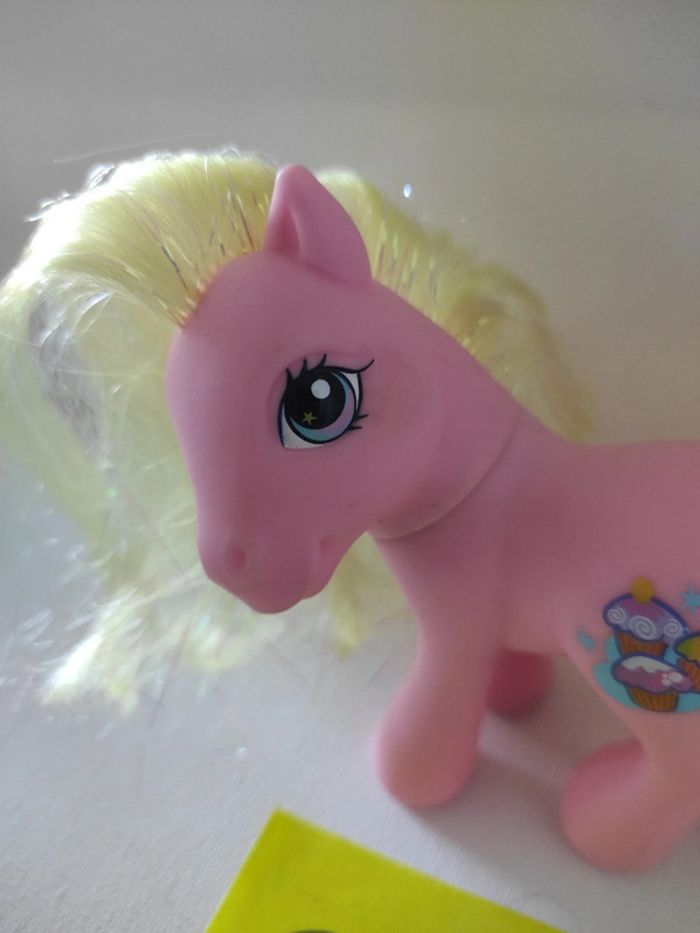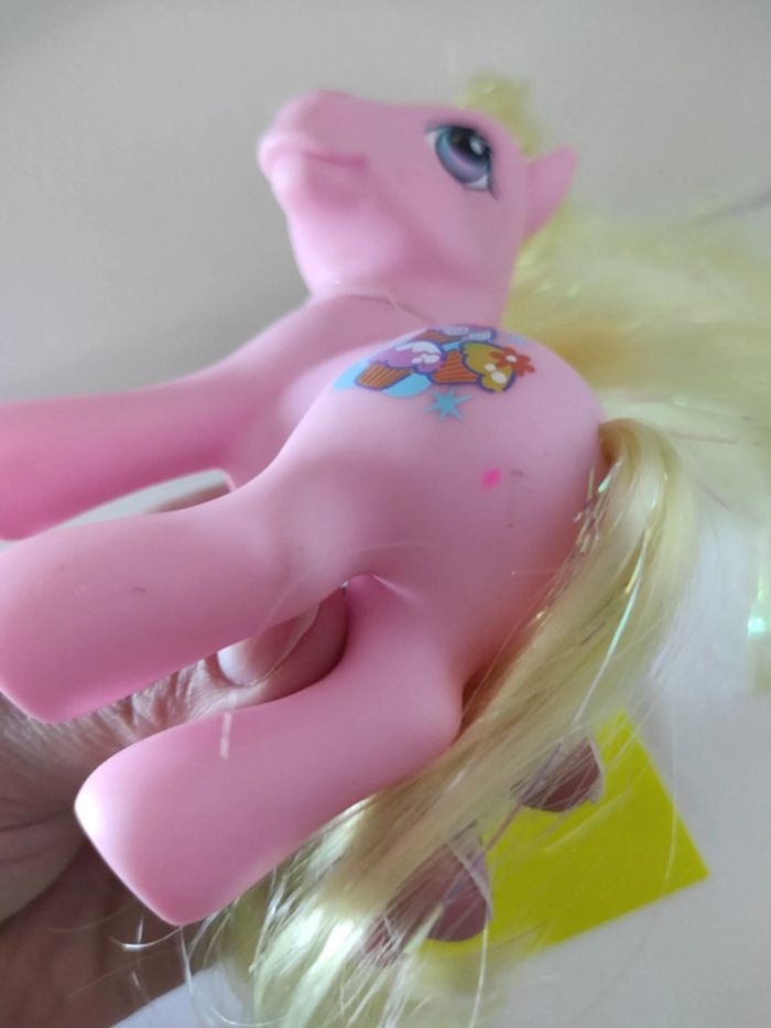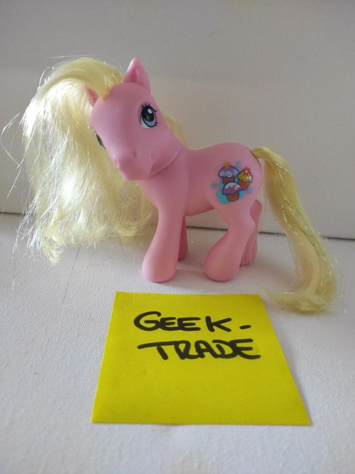 Cupcake Elle a un point de stabilo rose sous la queue ( voir photo) Yeux et la cutie mark est ok My little Pony g3 Marque Hasbro Description complément : Petit nettoyage à prévoir Les crins sont de la longueur en photo ils peuvent potentiellement avoir été écourtés Vous achetez ce que vous voyez les photos font entièrement partiede la description Transport : Les frais de transport comprennent les frais du transporteur ainsi que l'emballage pour protéger au mieux votre achat. Chaque achat est envoyé en format colis avec numéro de suivi Le poids du colis est de 500g finit (je ne peux pas faire moins) il peut donc y avoir plusieurs objets dans le carton si vous le souhaitez (contactez moi afinde grouper les frais de port) Référencement : My little pony g3 Mon petit poney g3 Vintage/ancien /collection #geektradeponeyg3 Mon petit poney / my little pony / Mein Kleines pony / mi pequeno pony /mlp #mylittlepony #monpetitponey #poney #hasbro #vintage #ancien #collection#collectionneur #cheval #poneyg3 #ponyg3 #jouetancien #mlp #jouetfille #fille#enfant #jouet #poupée