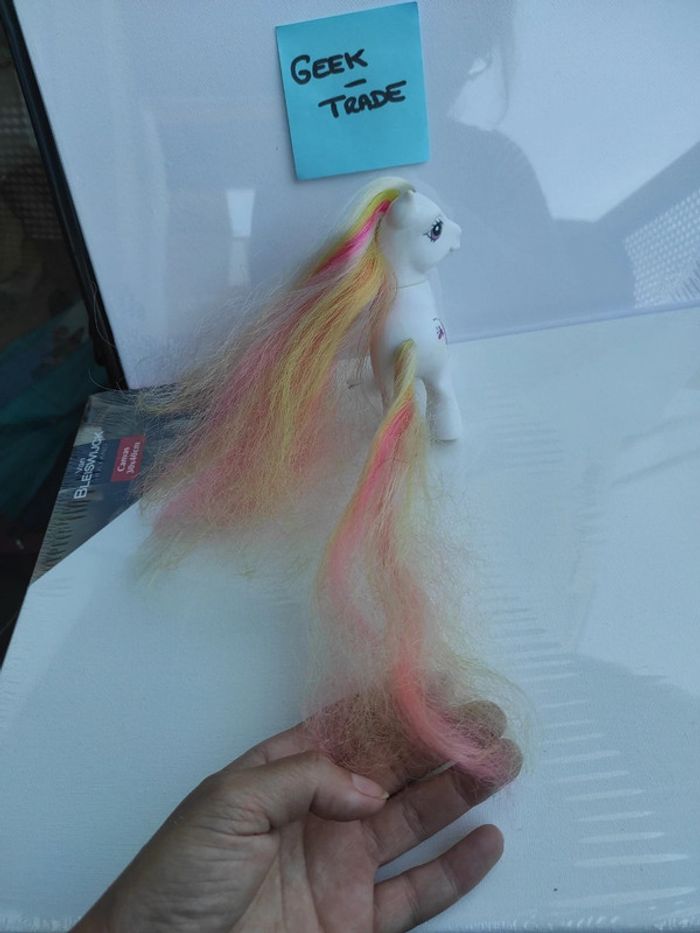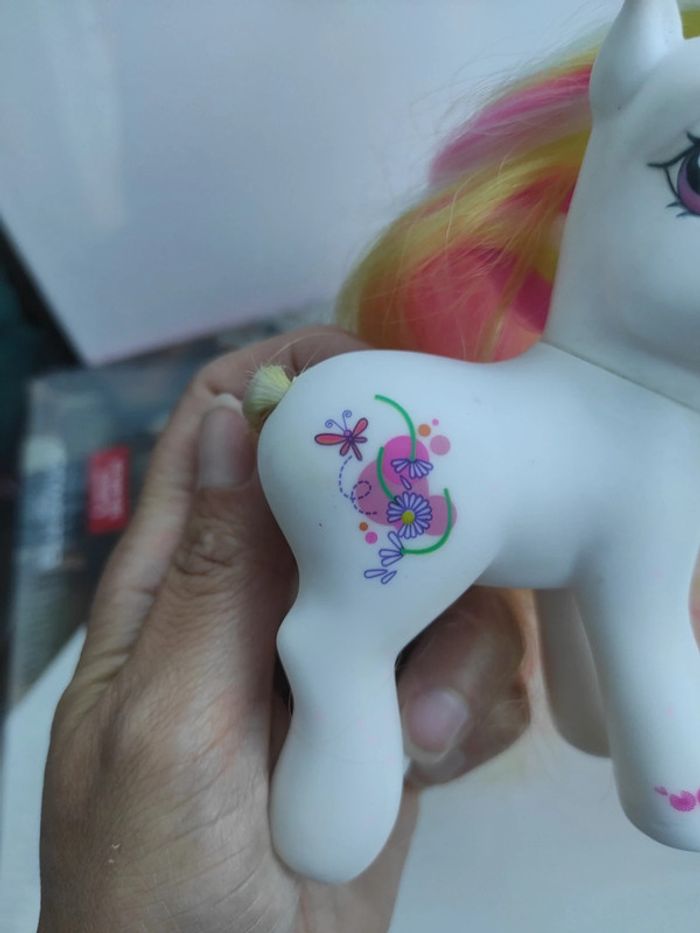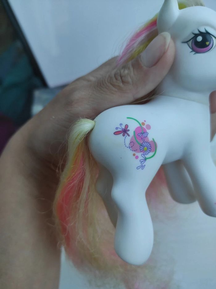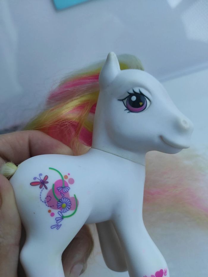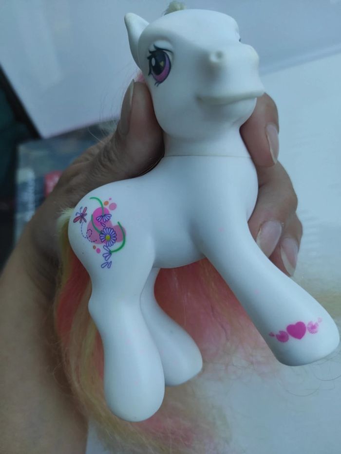 Sully sunshine Yeux ok , cutie mark ok Multiples point de stabilo rose sur le poney 2 traces jaunes imprégnés sur la croupe a côté de la cutie mark Impacts sur le plastique à l arrière de la patte avant Gros soin des crins à faire Le plastique sera à nettoyer pour lui rendre sa blancheur de façon uniforme Crins légèrement rêches soin à faire My little Pony g3 Marque Hasbro Description complément : Petit nettoyage à prévoir Les crins sont de la longueur en photo ils peuvent potentiellement avoir été écourtés Vous achetez ce que vous voyez les photos font entièrement partiede la description Transport : Les frais de transport comprennent les frais du transporteur ainsi que l'emballage pour protéger au mieux votre achat. Chaque achat est envoyé en format colis avec numéro de suivi Le poids du colis est de 500g finit (je ne peux pas faire moins) il peut donc y avoir plusieurs objets dans le carton si vous le souhaitez (contactez moi afinde grouper les frais de port) Référencement : My little pony g3 Mon petit poney g3 Vintage/ancien /collection #geektradeponeyg3 Mon petit poney / my little pony / Mein Kleines pony / mi pequeno pony /mlp #mylittlepony #monpetitponey #poney #hasbro #vintage #ancien #collection#collectionneur #cheval #poneyg3 #ponyg3 #jouetancien #mlp #jouetfille #fille#enfant #jouet #poupée