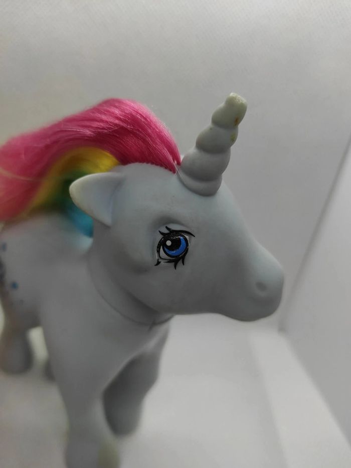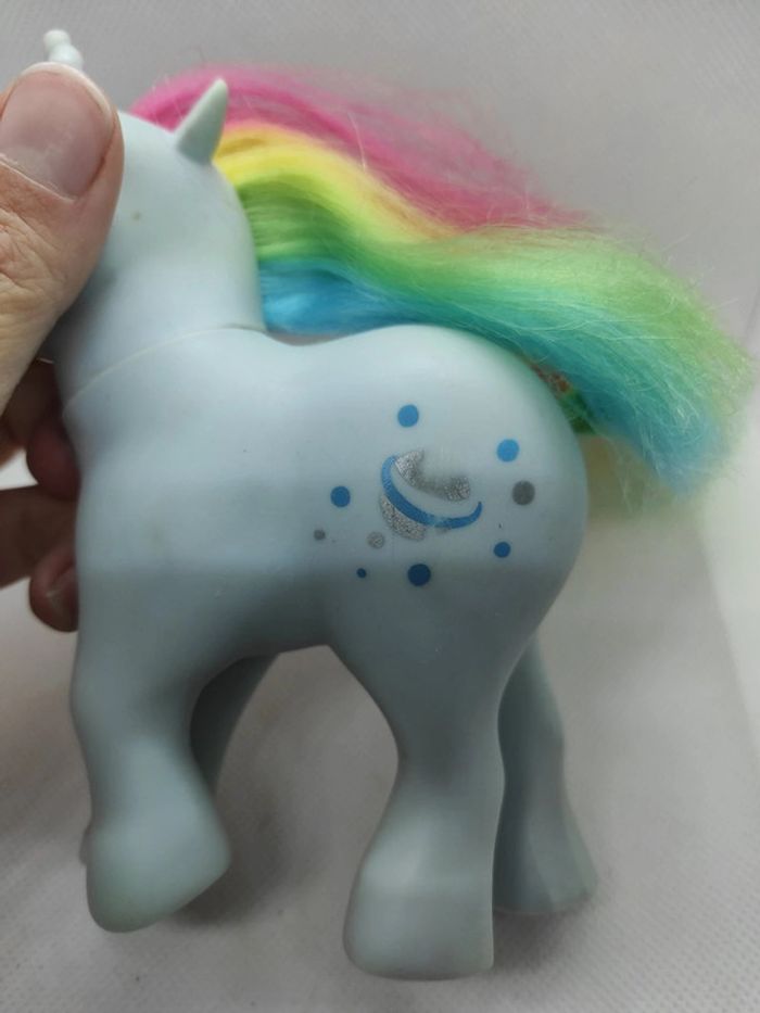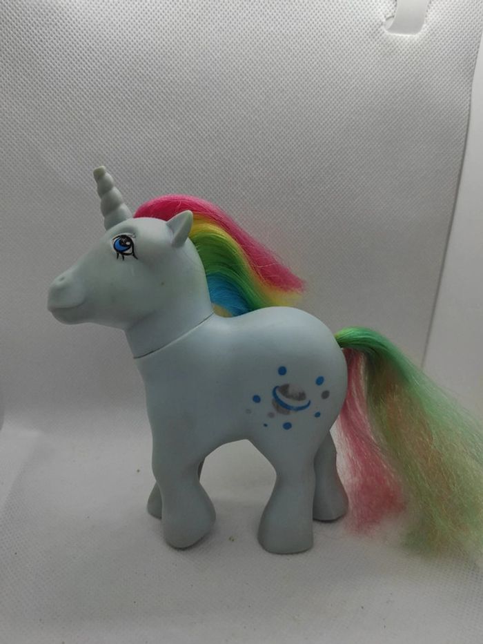 My little Pony g1 Moonstone italy Petit nettoyage a prévoir En l état , il manque le bout de la corne , crins écourtés , des surcouche sur les pattes avant j avoue ne pas savoir si ça partira , perte de peinture sur les cuties mark, Il est à prendre dans l état Marque Hasbro  Complément description:  L'objet est exactement comme sur les photos, vous achetez ce que vous voyez les photos font entièrement partie de la description.  Les crins sont de la longueur que vous voyez il peuvent potentiellement être écourtés  Petit nettoyage à prévoir  Pour plus d'informations vous pouvez me contacter directement je vous répondrais avec plaisir  Transport :  Les frais de port comprennent les frais du transporteur, le carton et le calage nécessaire à la bonne réception de votre colis.  Envoi sous format de colis  Envoi avec numéro de suivis systématique Achat multiple:  Plusieurs poneys peuvent être mis dans un même carton ( poids finit du colis 500g), contactez moi avant d'acheter afin de grouper les frais de port  Référencement :   My little pony g1 Mon petit poney g1 Jouet ancien / vintage / collection / occasion #geektradeponeyg1 #mylittlepony #monpetitponey #poney #hasbro #vintage #ancien #collection #collectionneur #cheval #poneyg1 #ponyg1 #jouetancien #mlp #jouetfille #fille #enfant #jouet #poupée #poneyàcoiffer  Mein kleines pony Mi pequeno pony