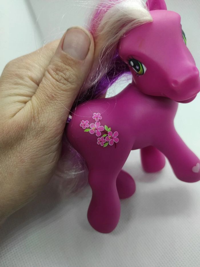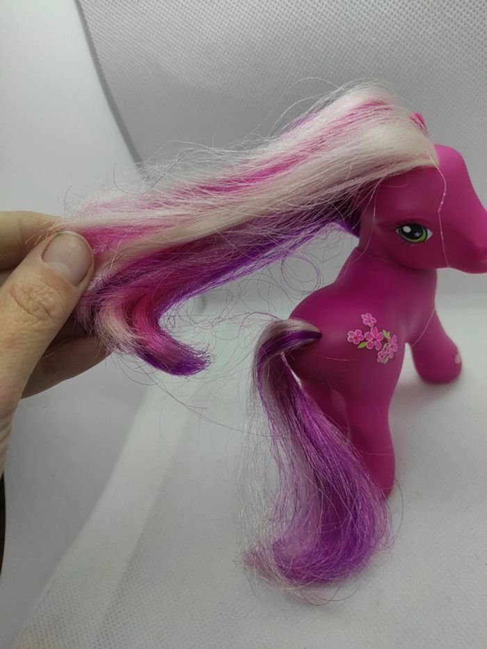 Cherry blossom II Bel eta la marque sous la patte à fondu voir photo Quelques légères rayures sous la queue My little Pony g3 Marque Hasbro Description complément : Petit nettoyage à prévoir Les crins sont de la longueur en photo ils peuvent potentiellement avoir été écourtés Vous achetez ce que vous voyez les photos font entièrement partiede la description Transport : Les frais de transport comprennent les frais du transporteur ainsi que l'emballage pour protéger au mieux votre achat. Chaque achat est envoyé en format colis avec numéro de suivi Le poids du colis est de 500g finit (je ne peux pas faire moins) il peut donc y avoir plusieurs objets dans le carton si vous le souhaitez (contactez moi afinde grouper les frais de port) Référencement : My little pony g3 Mon petit poney g3 Vintage/ancien /collection #geektradeponeyg3 Mon petit poney / my little pony / Mein Kleines pony / mi pequeno pony /mlp #mylittlepony #monpetitponey #poney #hasbro #vintage #ancien #collection#collectionneur #cheval #poneyg3 #ponyg3 #jouetancien #mlp #jouetfille #fille#enfant #jouet #poupée