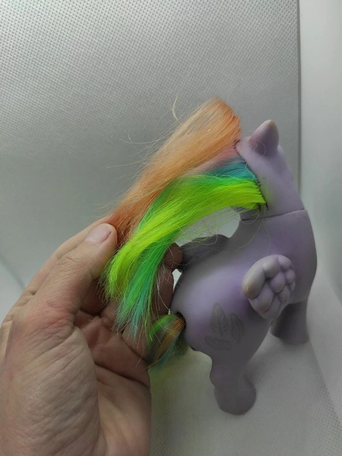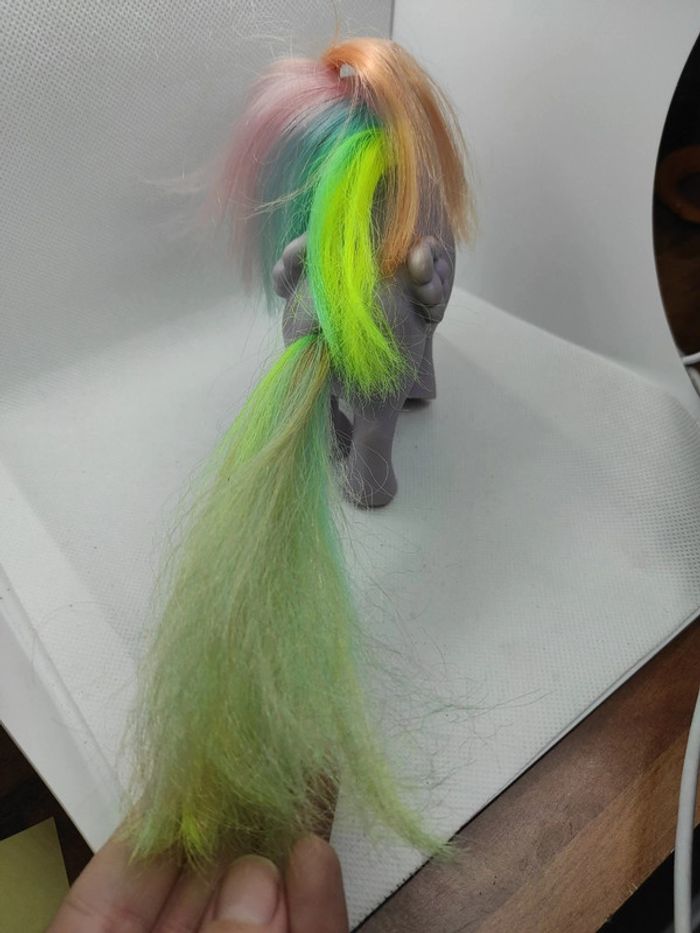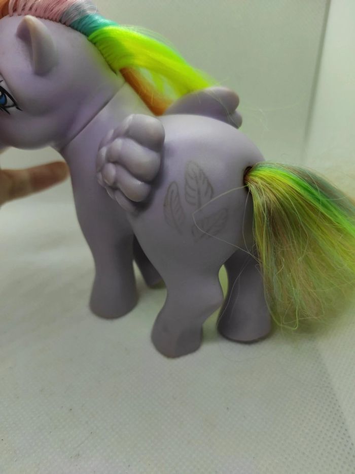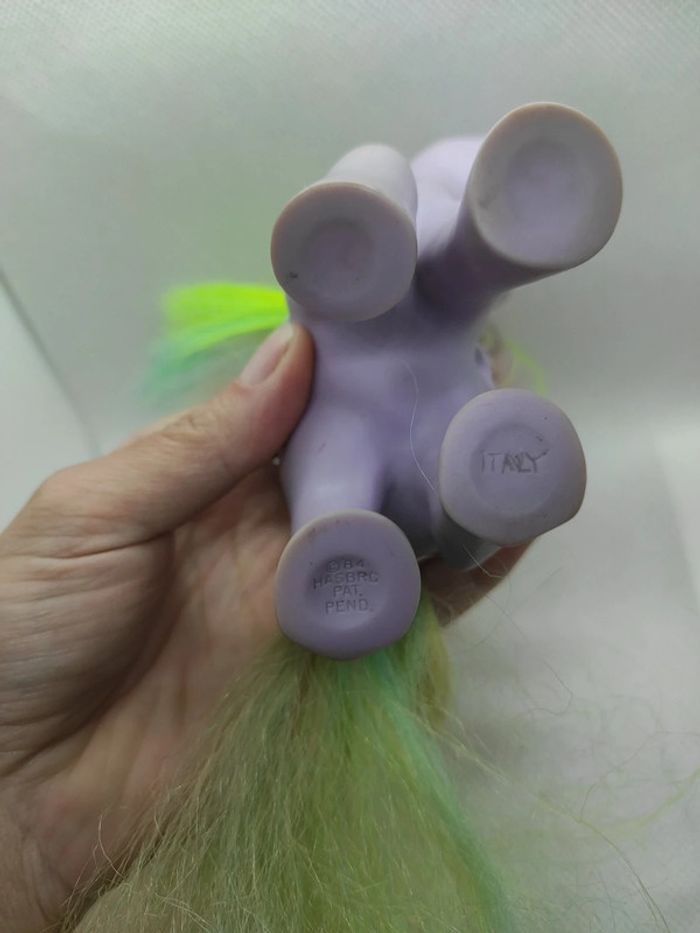 My little Pony g1 Tickle italy nirvana Défaut de peinture dans les yeux ( perte Dee peinture ), manque des crins voir photo , t Races de stabilo jaune a la base des crins , diverses traces à nettoyer , trace de colle à enlever au niveau du cou ( donc je pense que la tête est collée ), cuties mark estompées, traces sombres a la pointe des ailes ( pas cancer mais usure ou nettoyage interne à faire ) Marque Hasbro  Complément description:  L'objet est exactement comme sur les photos, vous achetez ce que vous voyez les photos font entièrement partie de la description.  Les crins sont de la longueur que vous voyez il peuvent potentiellement être écourtés  Petit nettoyage à prévoir  Pour plus d'informations vous pouvez me contacter directement je vous répondrais avec plaisir  Transport :  Les frais de port comprennent les frais du transporteur, le carton et le calage nécessaire à la bonne réception de votre colis.  Envoi sous format de colis  Envoi avec numéro de suivis systématique Achat multiple:  Plusieurs poneys peuvent être mis dans un même carton ( poids finit du colis 500g), contactez moi avant d'acheter afin de grouper les frais de port  Référencement :   My little pony g1 Mon petit poney g1 Jouet ancien / vintage / collection / occasion #geektradeponeyg1 #mylittlepony #monpetitponey #poney #hasbro #vintage #ancien #collection #collectionneur #cheval #poneyg1 #ponyg1 #jouetancien #mlp #jouetfille #fille #enfant #jouet #poupée #poneyàcoiffer  Mein kleines pony Mi pequeno pony