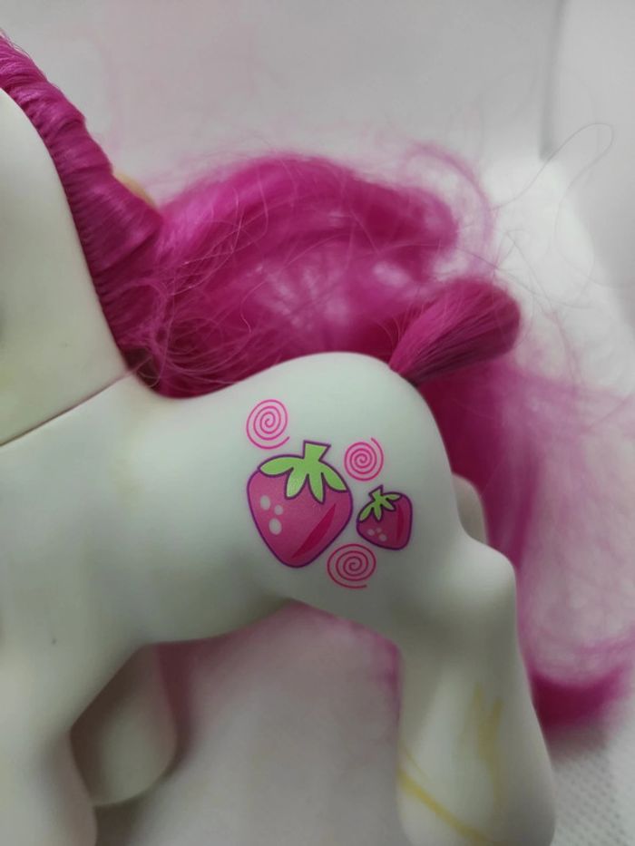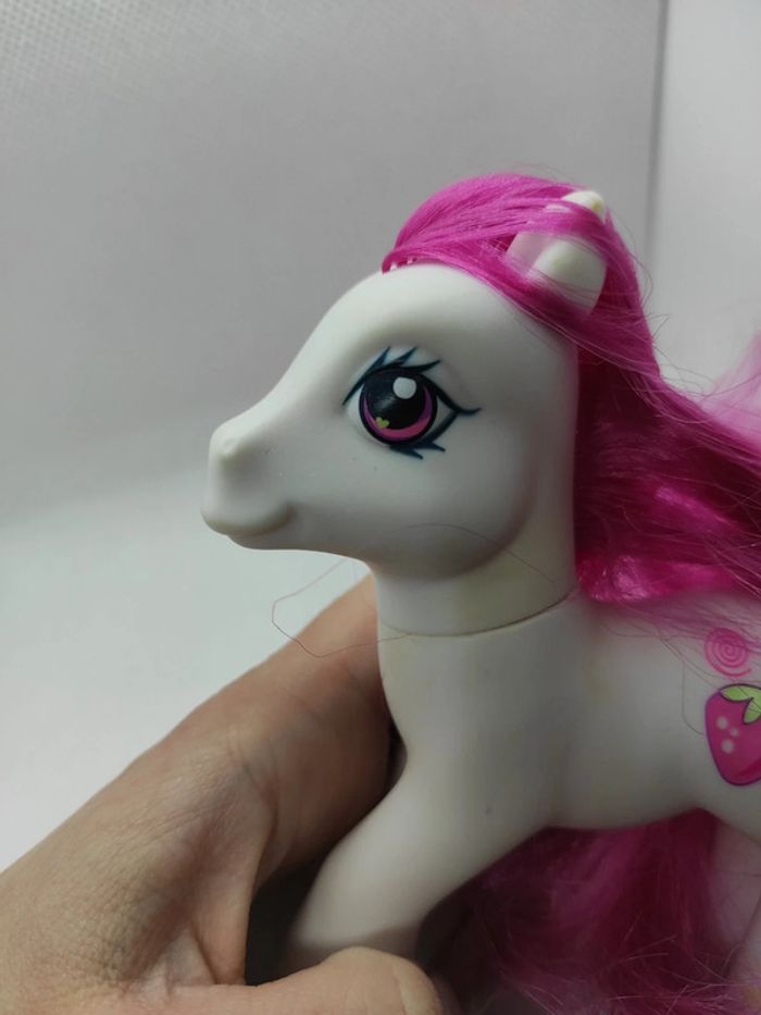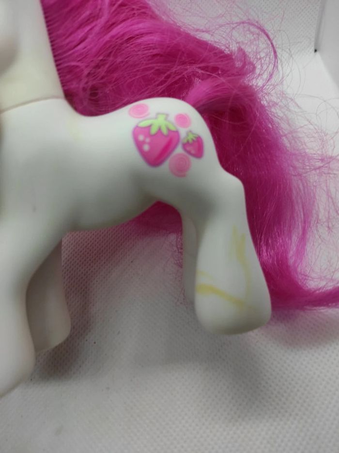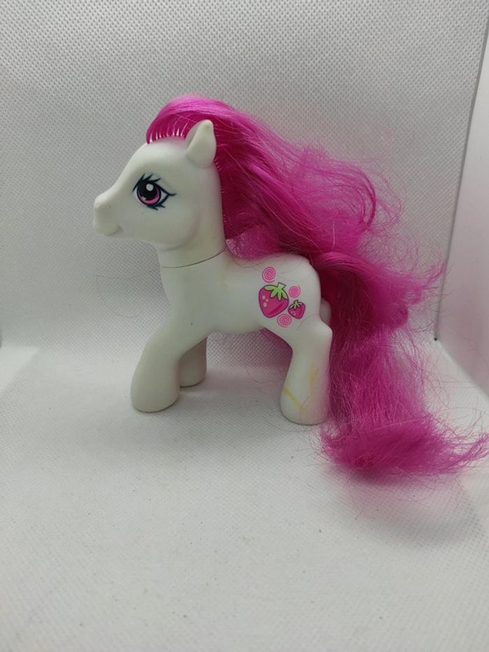Strawberry swirl  II Marques jaunes imprégnées sur une patte , traces jaunit au niveau du cou Bait pour custom  My little Pony g3 Marque Hasbro Description complément : Petit nettoyage à prévoir Les crins sont de la longueur en photo ils peuvent potentiellement avoir été écourtés Vous achetez ce que vous voyez les photos font entièrement partiede la description Transport : Les frais de transport comprennent les frais du transporteur ainsi que l'emballage pour protéger au mieux votre achat. Chaque achat est envoyé en format colis avec numéro de suivi Le poids du colis est de 500g finit (je ne peux pas faire moins) il peut donc y avoir plusieurs objets dans le carton si vous le souhaitez (contactez moi afinde grouper les frais de port) Référencement : My little pony g3 Mon petit poney g3 Vintage/ancien /collection #geektradeponeyg3 Mon petit poney / my little pony / Mein Kleines pony / mi pequeno pony /mlp #mylittlepony #monpetitponey #poney #hasbro #vintage #ancien #collection#collectionneur #cheval #poneyg3 #ponyg3 #jouetancien #mlp #jouetfille #fille#enfant #jouet #poupée