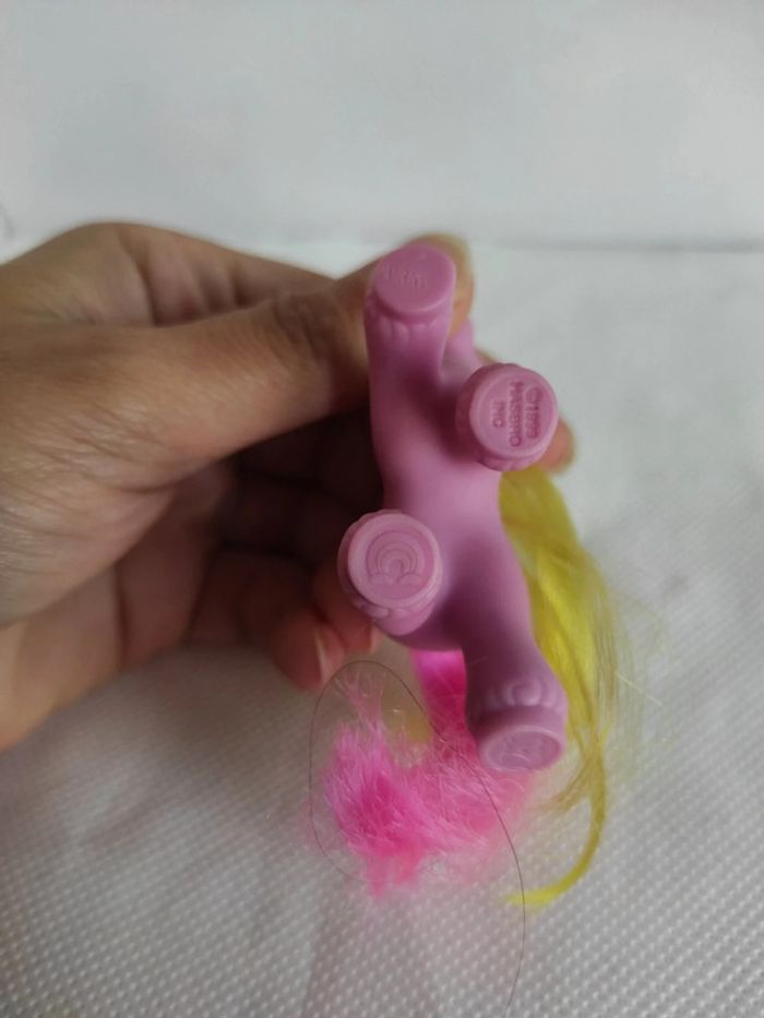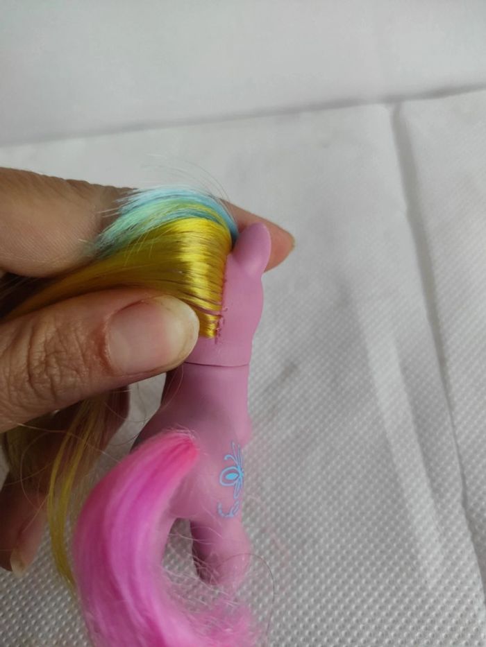 Baby dart Un point de stabilo rose voir photo C ins de la queue un peu rêche au bout Le plastique est abîmé juste à côté des trous des crins voir photo Bel état ormis cela Marque Hasbro  Compléments de description:  L'objet est exactement comme sur les photos, vous achetez ce que vous voyez les photos font entièrement partie de la description.  Les crins sont de la longueur que vous voyez il peuvent potentiellement être écourtés  Petit nettoyage à prévoir  Pour plus d'informations vous pouvez me contacter directement je vous répondrais avec plaisir  Transport :  Les frais de port comprennent les frais du transporteur, le carton et le calage nécessaire à la bonne réception de votre colis.  Envoi sous format de colis  Envoi avec numéro de suivis systématique Achat multiple:  Plusieurs poneys peuvent être mis dans un même carton ( poids finit du colis 500g), contactez moi avant d'acheter afin de grouper les frais de port  Référencement :   My little pony g2 Mon petit poney g2 Jouet ancien / vintage / collection / occasion #geektradeponeyg2 #mylittlepony #monpetitponey #poney #hasbro #vintage #ancien #collection #collectionneur #cheval #poneyg2 #ponyg2 #jouetancien #mlp #jouetfille #fille #enfant #jouet #poupée #poneyàcoiffer  Mein kleines pony Mi pequeno pony