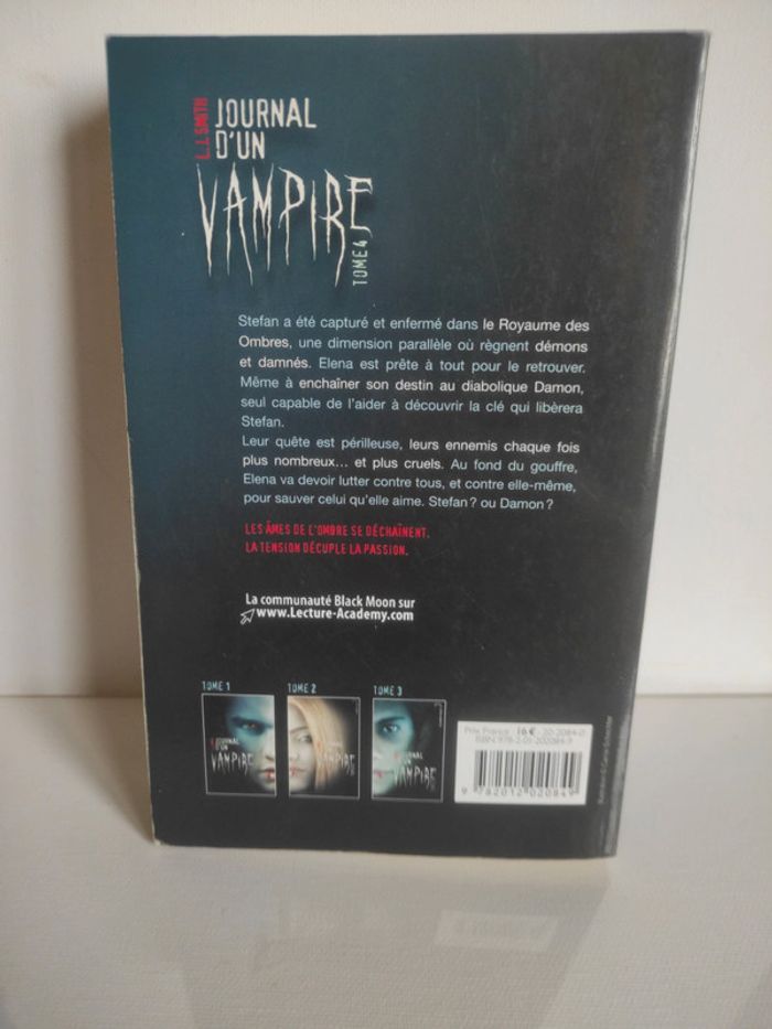 les pages ne sont plus blanche sur les tranches très légèr cornement des angles Livre ayant été lu Tome 4 de la célèbre saga vampire diary / journal d'un vampire Compléments de description :  Livre de style Bit Lit soit des livres pour jeune adulte. Un univers fantastique captivant et très prenant En fonction des livres vous aurez des univers magique  de type fées , vampires, loups garou etc Les livres sont exactement dans l’état que vous voyez sur les photos. Celles-ci font entièrement partie de la description de l’objet. Un description détaillée vous aura été mise dans la partie haute de l’annonce.  Pour plus d'informations vous pouvez me contacter directement je vous répondrais avec plaisir  Transport :  Les frais de port sont calculés au plus juste pour un envoi via MONDIAL RELAY . Je ne fais pas les envois colissimo tout achat par ce mode ne sera pas accepté. Les colis sont préparés avec le plus grand soin. Chaque article est emballé individuellement pour éviter les frottements et bien sûr le tout est bien calé afin d’éviter les casses durant les transports.  Je n’utilise que des cartons pour les envoi pas de sac poubelles ou autre chose. Achat multiple:  Plusieurs articles peuvent être mis dans un même colis. Comme il y a un souci pour créer des lots via l’interface de Vinted n’hésitez pas à me contacter directement pour que je vous les fasses. Au vu du nombre important de favoris merci de m’indiquer par message les articles en question. Une nouvelle annonce sera créée avec les screens écran des articles et des description.  Référencement :  #livre #bit-lit #bitlit #fantastique #fantasy #romance #adulte #adolescent #jeuneadulte #passetemps #passe-temps #loisir #culture #univers #passion #prenant #vampire #fée #loup-garou #loupgarou #enquête  #collection #collectionneur