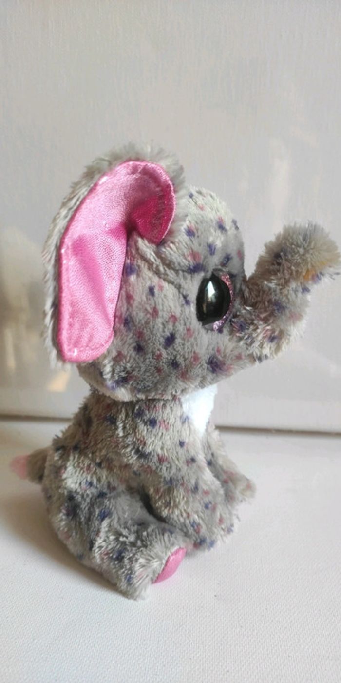 Petite peluche Ty éléphant gris a pois oreilles roses - photo numéro 1