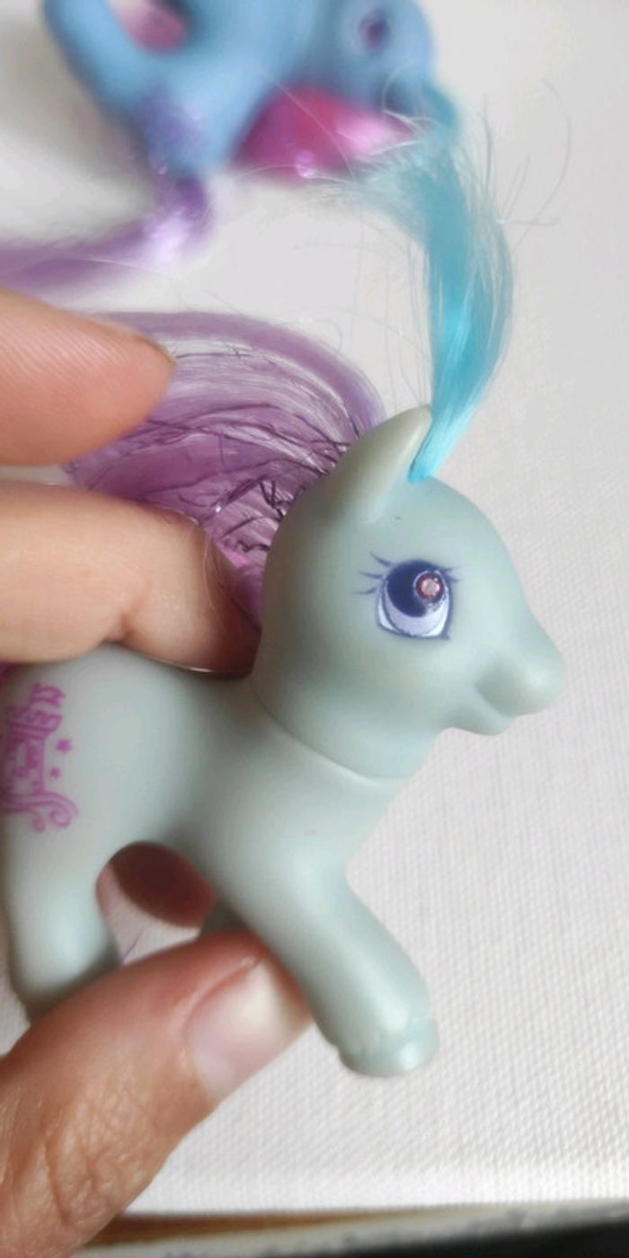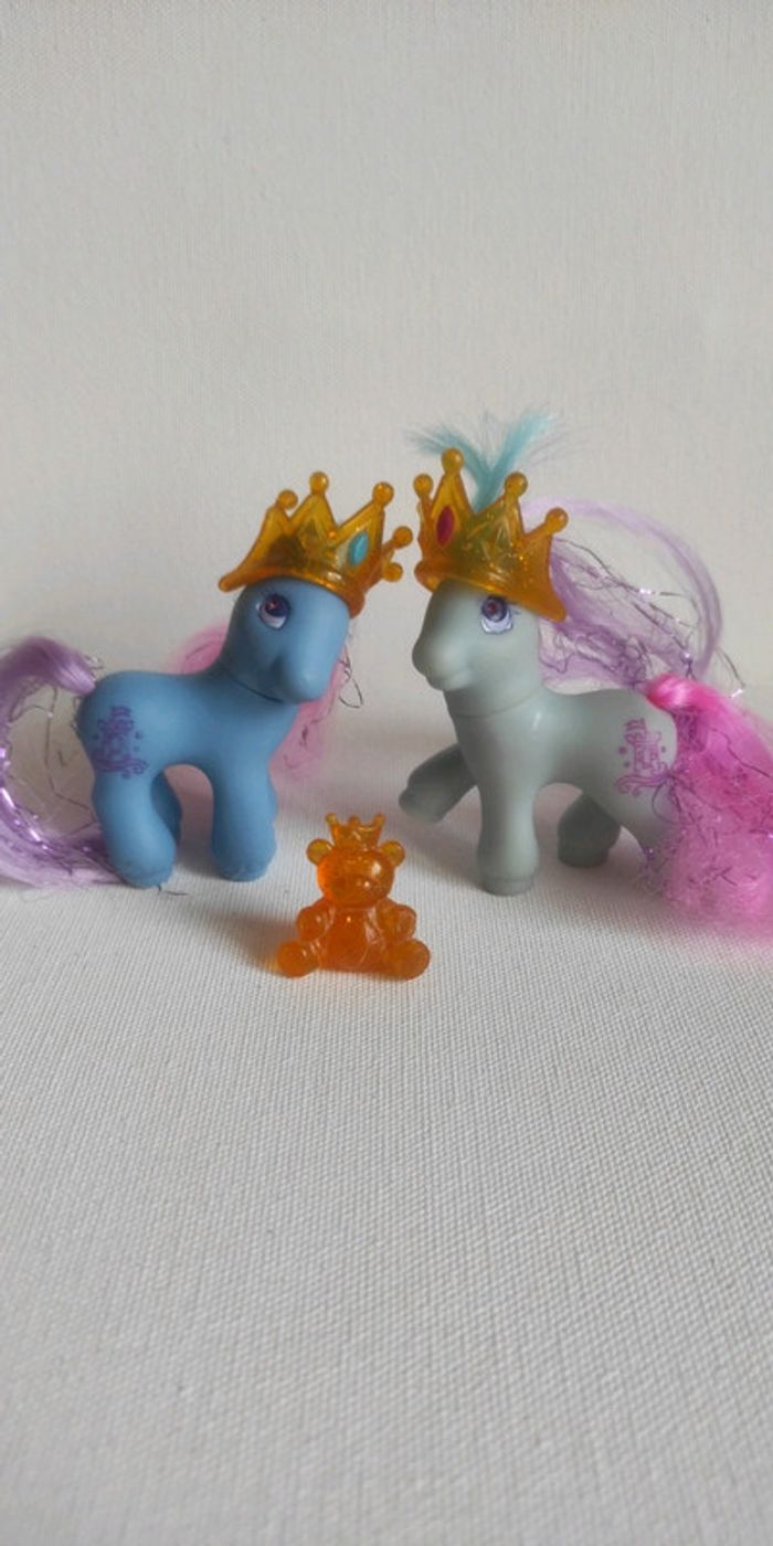 Jewel et sparkle avec leurs accessoires d'origine Deux couronnes et un nounours Royal Twins babies Les poneys ont les crins frizzy soin a faire Sparkle a une cutie mark un peu effacée et l arrière d un sabot orange voir photo Jewel a une très très légère trace bleu imprégnée estompée My little pony g2 Mon petit poney g2 exactement comme sur les photos  hasbro  Vous achetez ce que vous voyez, les photos font entièrement parties de la description. N'hésitez pas à me contacter pour plus de renseignements. Jouet ancien / vintage / collection / occasion My little pony / Mein Kleines / mon petit poney / mi pequeno pony / mlp Envoi par mondial relay #geektradeponeyg2 #mylittlepony #monpetitponey #poney #hasbro #vintage #ancien #collection #collectionneur #cheval #poneyg2 #ponyg2  #jouetancien #mlp #jouetfille #fille #enfant #jouet #poupée #poneyàcoiffer