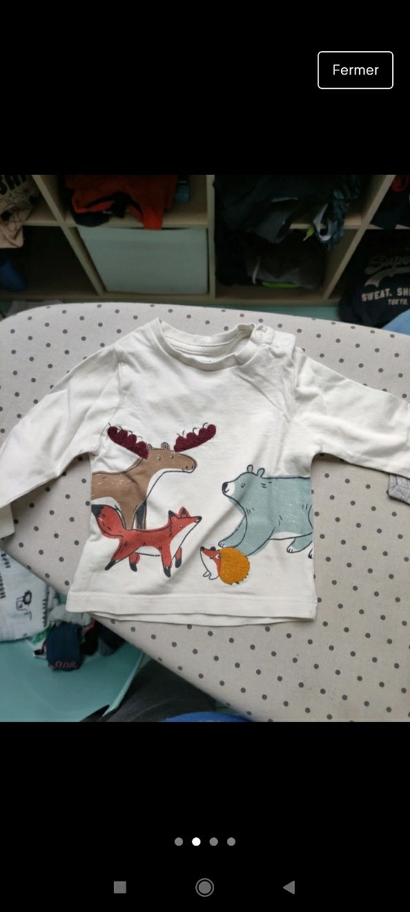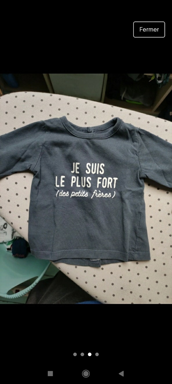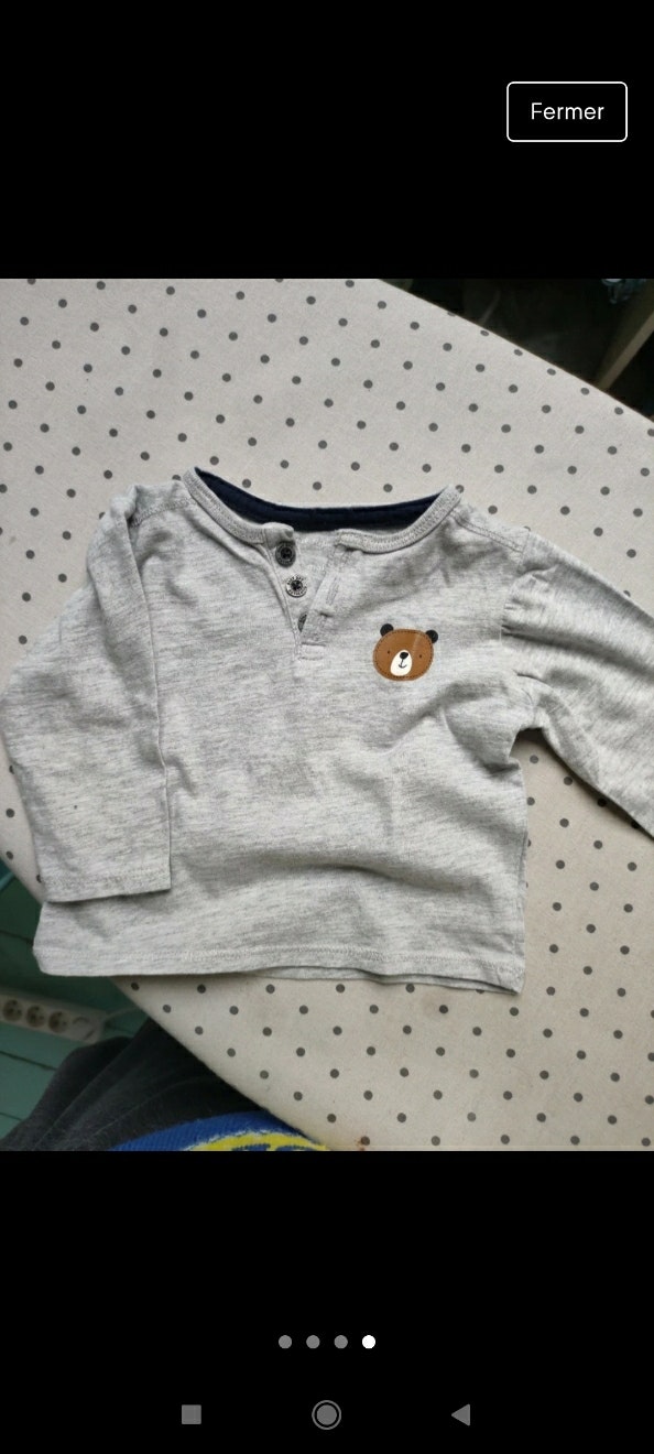 3 hauts manche longue 2 Vertbaudet et 1 pat et riparon comme neuf peu porté taille 3mois