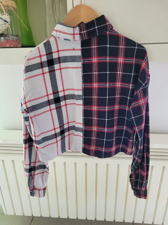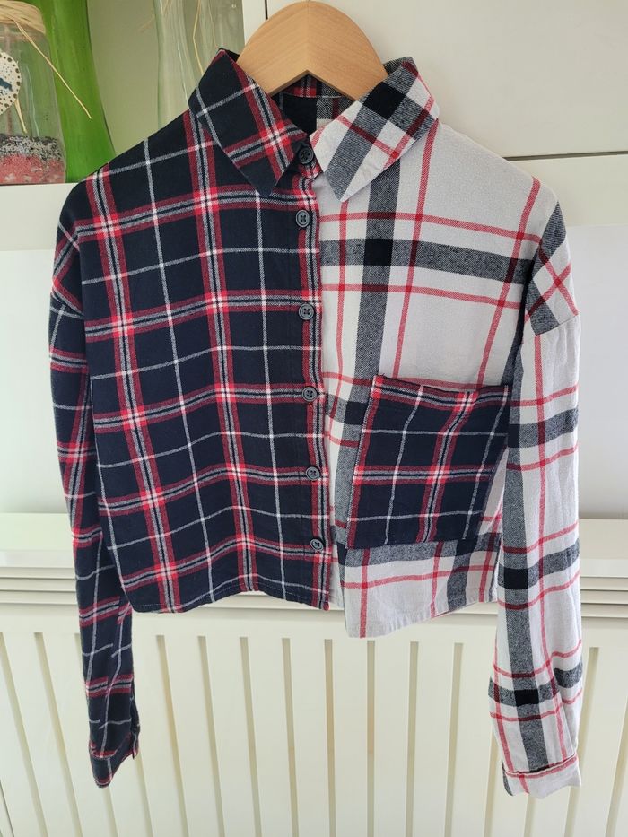 Vends chemise à carreaux. Noire, blanche et rouge. Coupe courte. 100% coton. Marque Kiabi. Taille XXS. Très bon état.