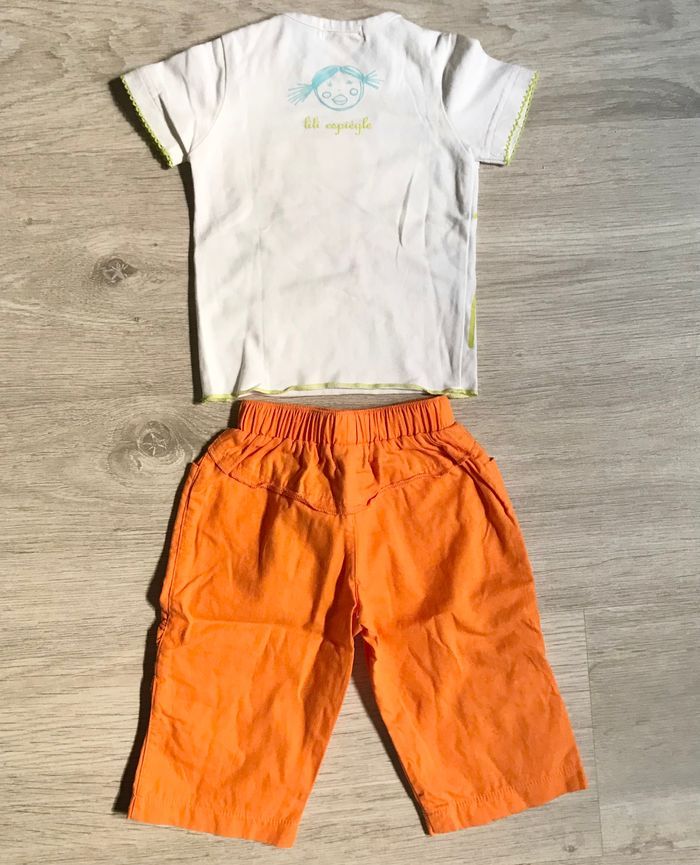 T-shirt manches courtes Tache (photo) Pantalon orange Froncé aux genoux