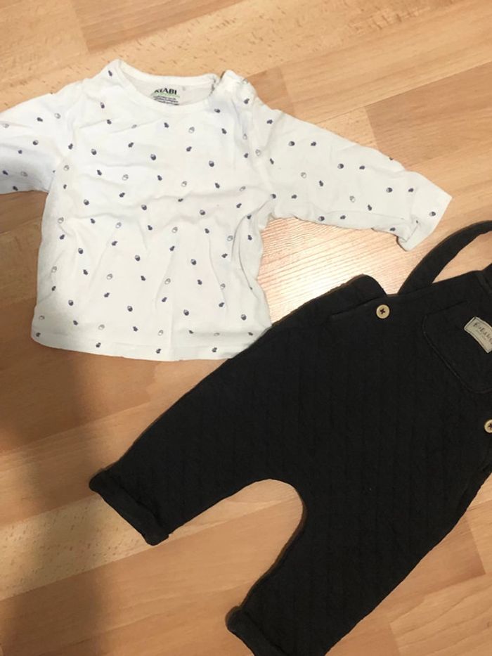 salopette et 3 t-shirt manches longue 6 mois