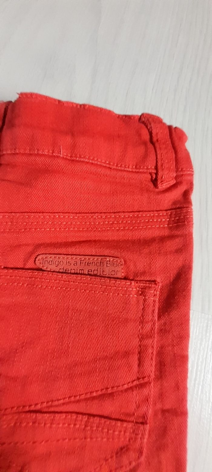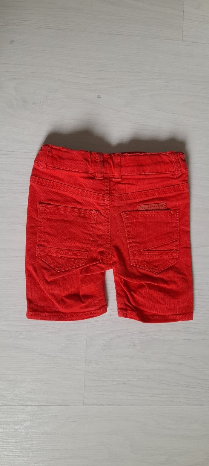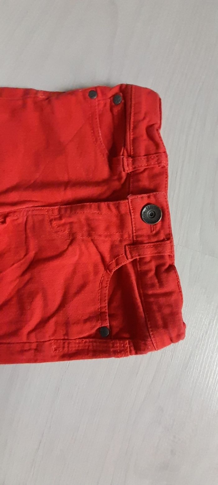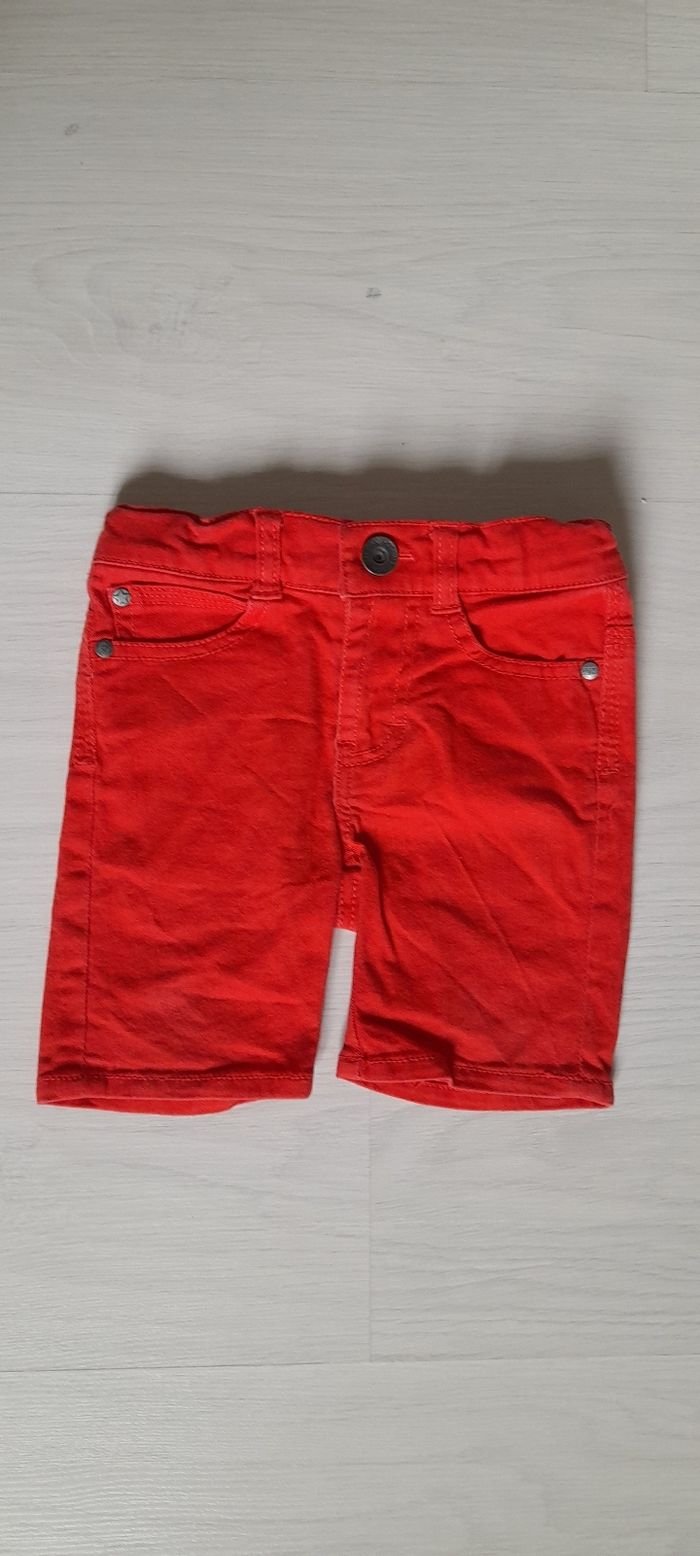 Short T 2 ans Marque Z Couleur rouge 3 poches devant 2 poches arrière Passants pour ceinture Attache fermeture éclair avec bouton et taille élastique avec possibilité de resserrage 98% coton et 2 % Elasthane Très très bon état