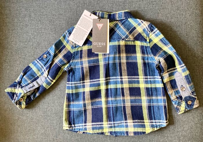 Chemise Guess jamais portée, neuve avec étiquette. Taille 3-6 mois. Manches longues ou courtes (boutons sur manche) 100% coton.
