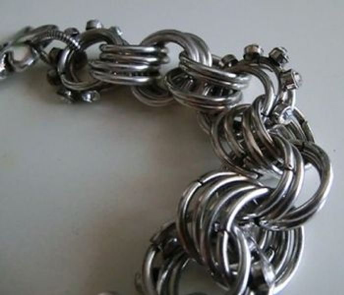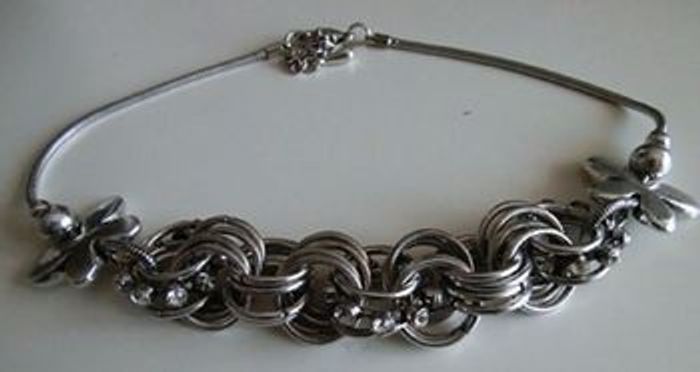 Taille des papillons : 3 cm x 2 cm Diamètre des anneaux du motif : 1,8 cm Longueur : 41 cm + 7 cm de chainette d'ajustage. Fermeture mousqueton.