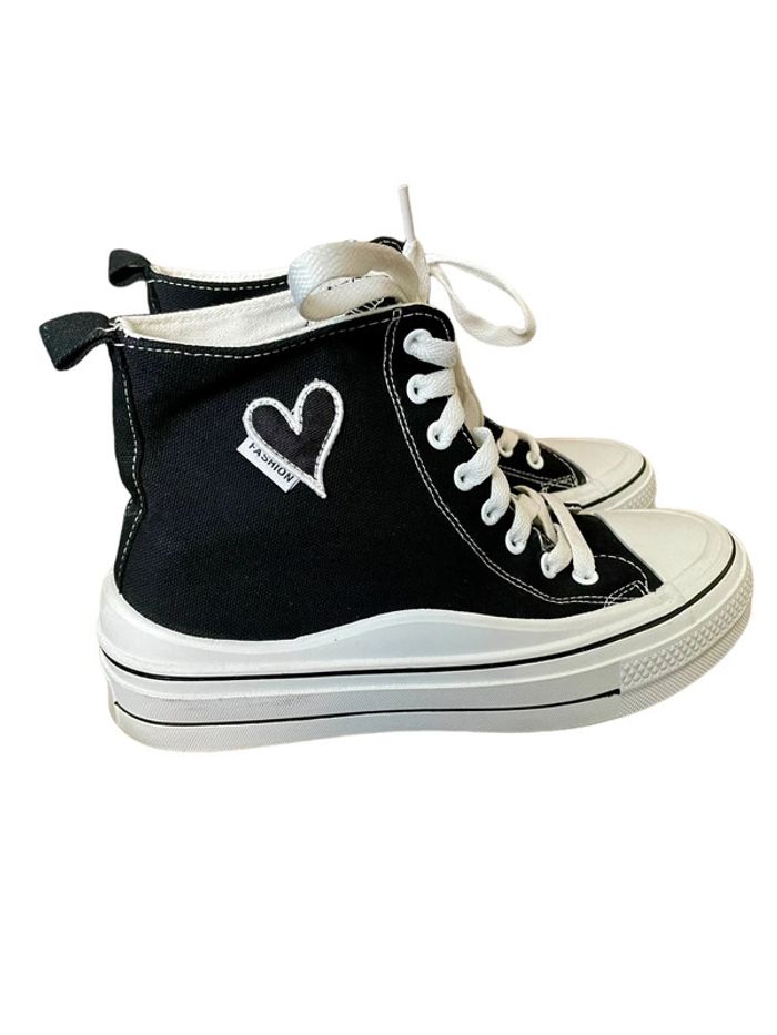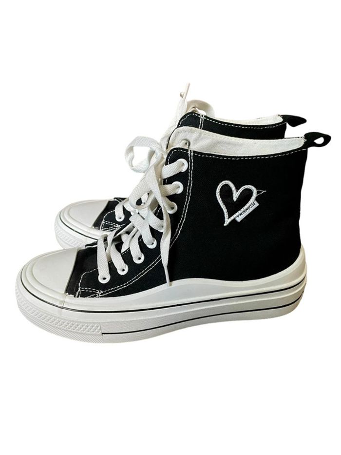 Bonjour,je vous présente ces baskets montantes 🖤🤍 - Boutique Indépendante - Couleurs noir et blanc - Plate-forme - Avec cœur sur le côté - Taille 39 - Très bon état 🖤🤍 MP pour plus d’informations ou de photos. Réduction sur les lots activée. Prix négociable Autres chaussures en taille 39 dans mon dressing : #estelledupont96Taille39