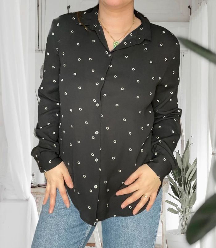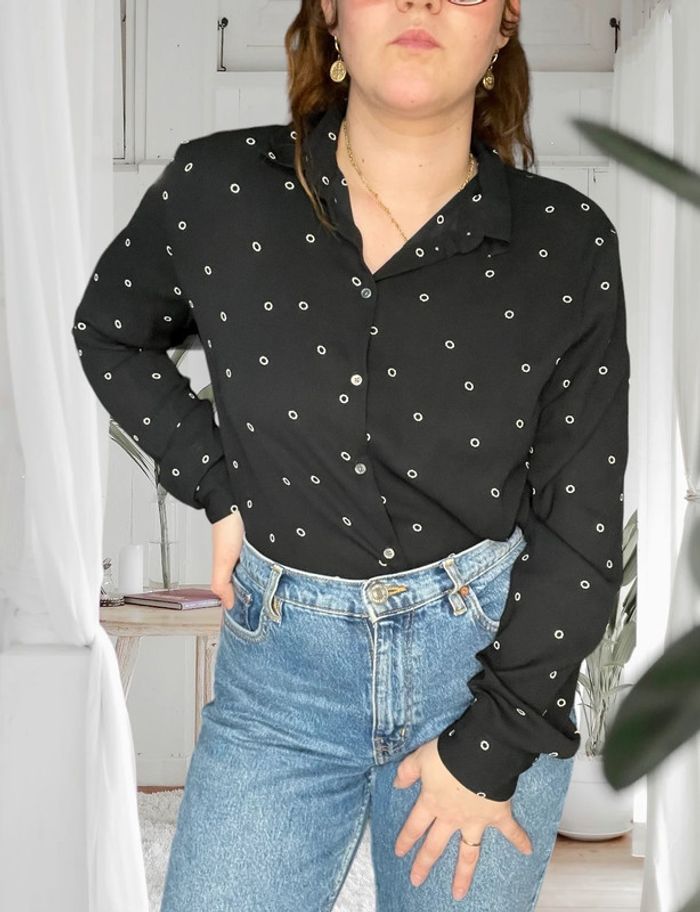 Blouse noir avec point blanc H&M taille L très bon état - photo numéro 1