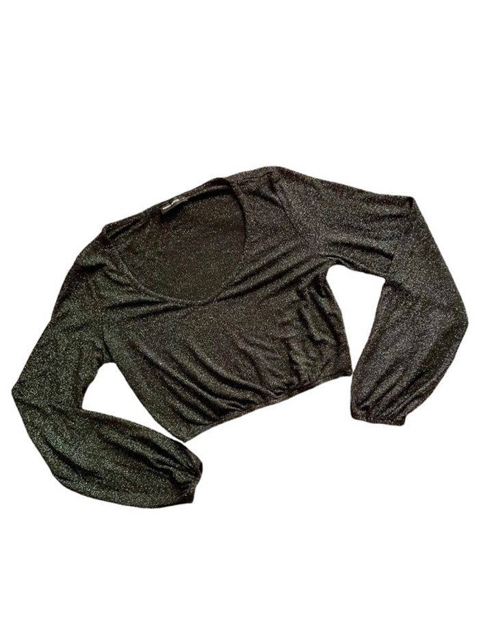 Crop top à paillettes noir et argenté Tally Weijl taille M très bon état - photo numéro 1