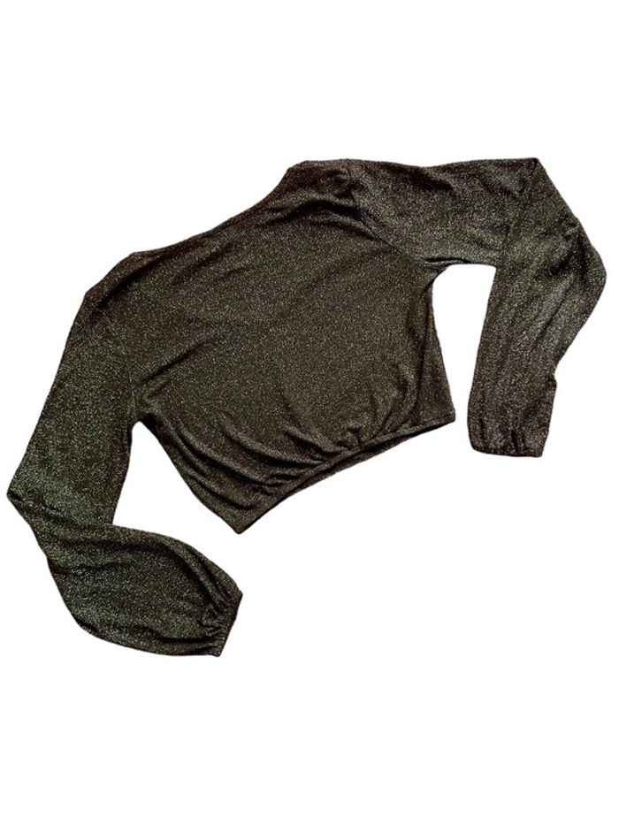 Crop top à paillettes noir et argenté Tally Weijl taille M très bon état - photo numéro 4