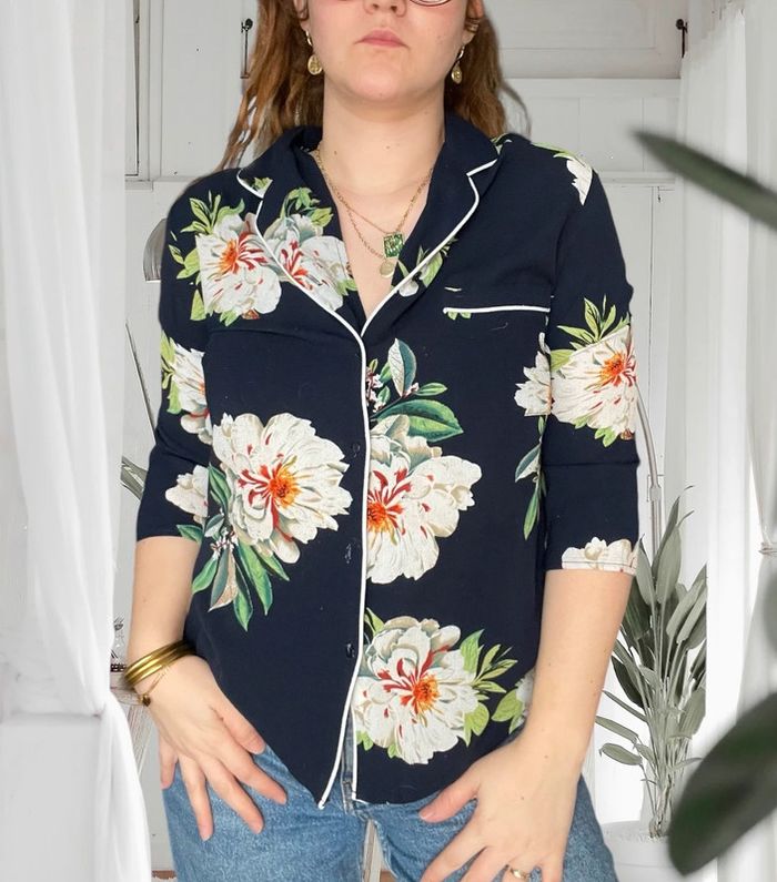Chemise bleu marine à fleurs Lili & Lala taille S - photo numéro 1