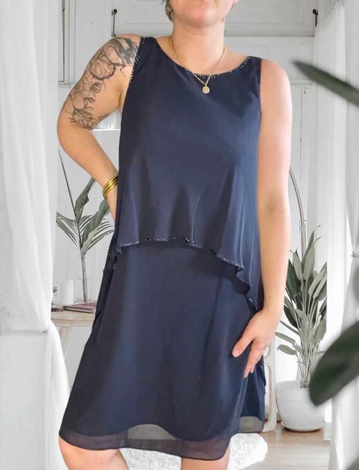 Robe bleu marine avec détails de perles argentées Esprit taille M très bon état - photo numéro 3