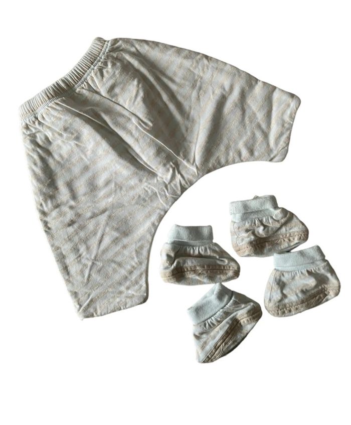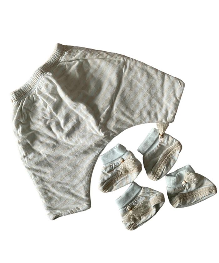Pantalon et chaussons bébé lignés saumon et blanc Catimini taille 1 mois - photo numéro 1
