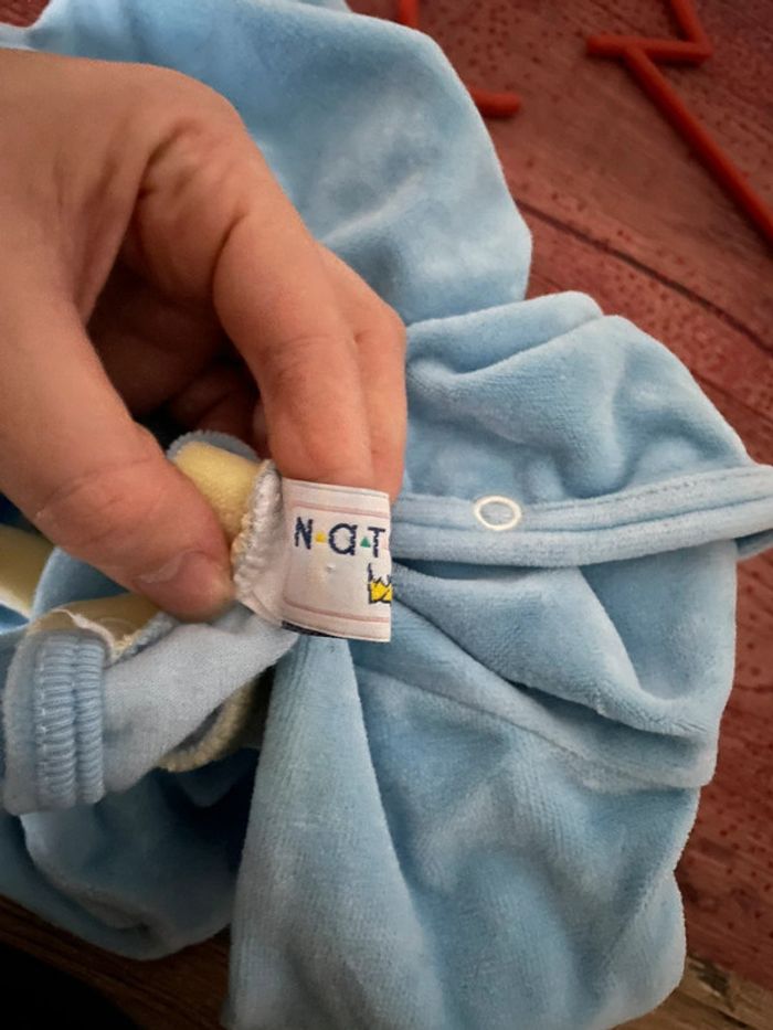 Pijama bleu velours bébé Natalys taille 1 mois très bon état - photo numéro 5