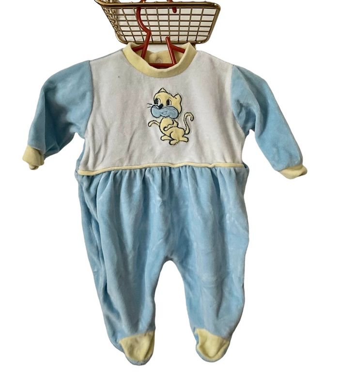 Pijama bleu velours bébé Natalys taille 1 mois très bon état