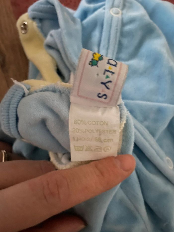 Pijama bleu velours bébé Natalys taille 1 mois très bon état - photo numéro 4
