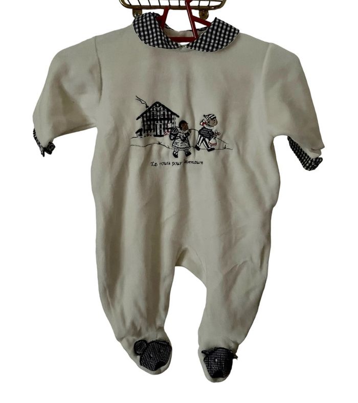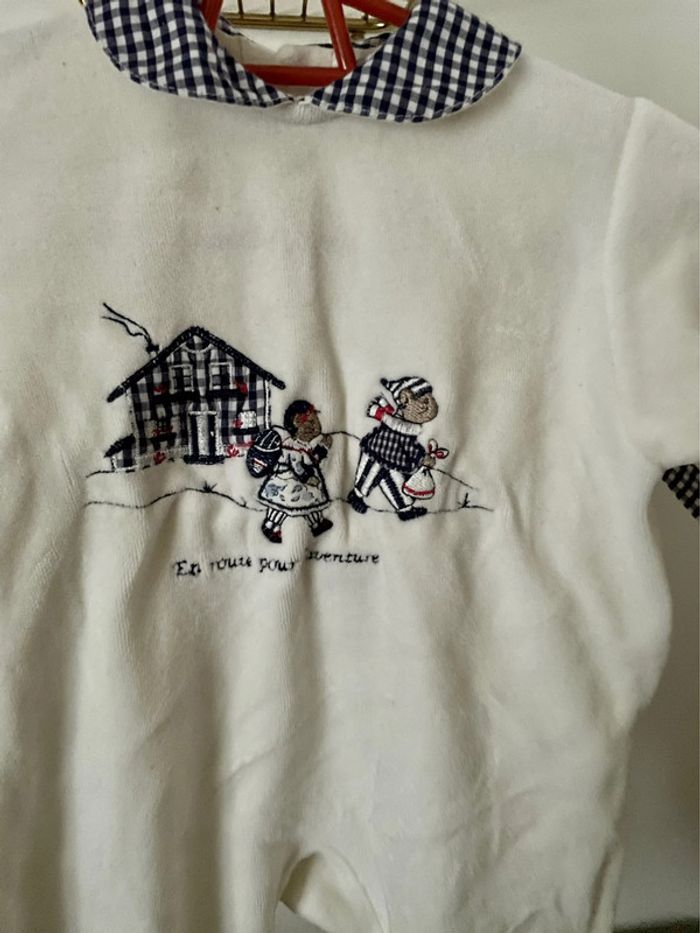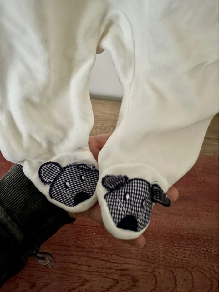 Pijama bleu et bleu velours pour bébé Natalys taille 1 mois très bon état - photo numéro 4