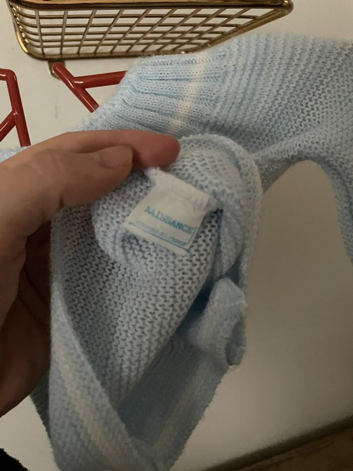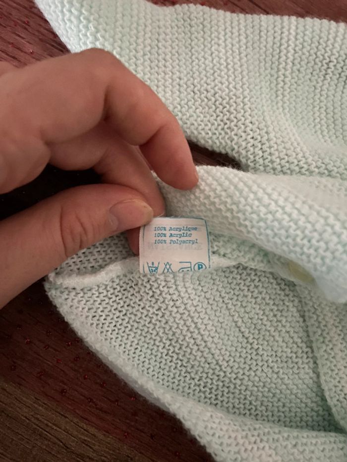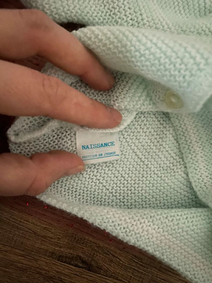 Lot de trois gilets naissance blanc, vert clair et bleu clair très bon état - photo numéro 11