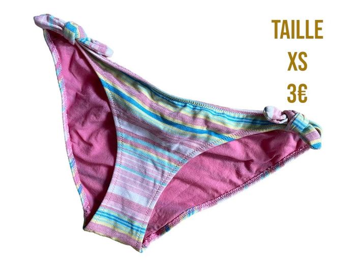 Culotte de bikini lignée rose, bleu et jaune taille XS neuf - photo numéro 1