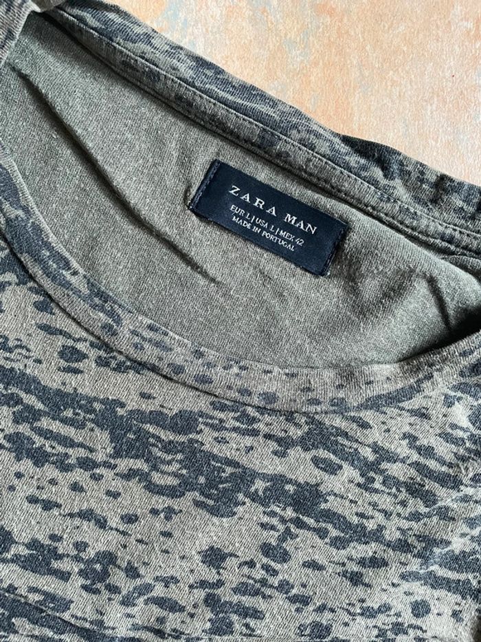 T-shirt Zara kaki et motifs noirs taille L - photo numéro 1