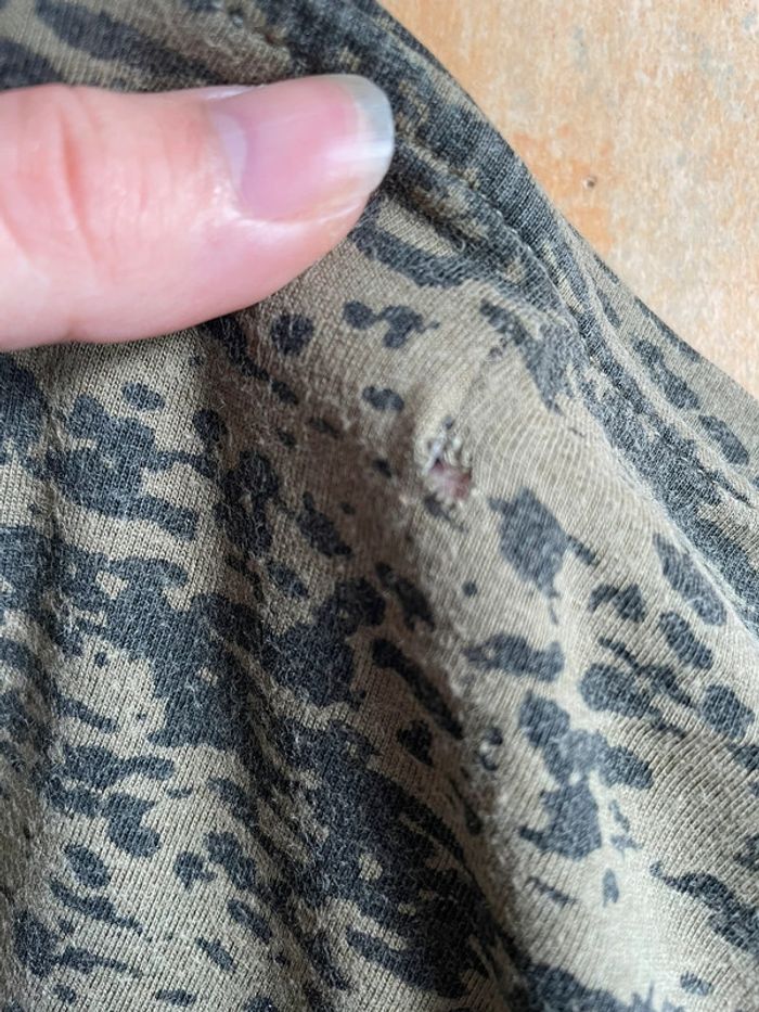 Bonjour, je vous présente ce t-shirt pour hommes 💚🖤 - Zara - De couleurs kaki et noir - 50% coton et 50% modale - Bon état : 2 petits trous (voir photo) - Taille L 🖤💚 MP pour plus d’informations ou de photos. Réduction sur les lots activée. Autres articles en taille L dans mon dressing : #estelledupont96TailleL