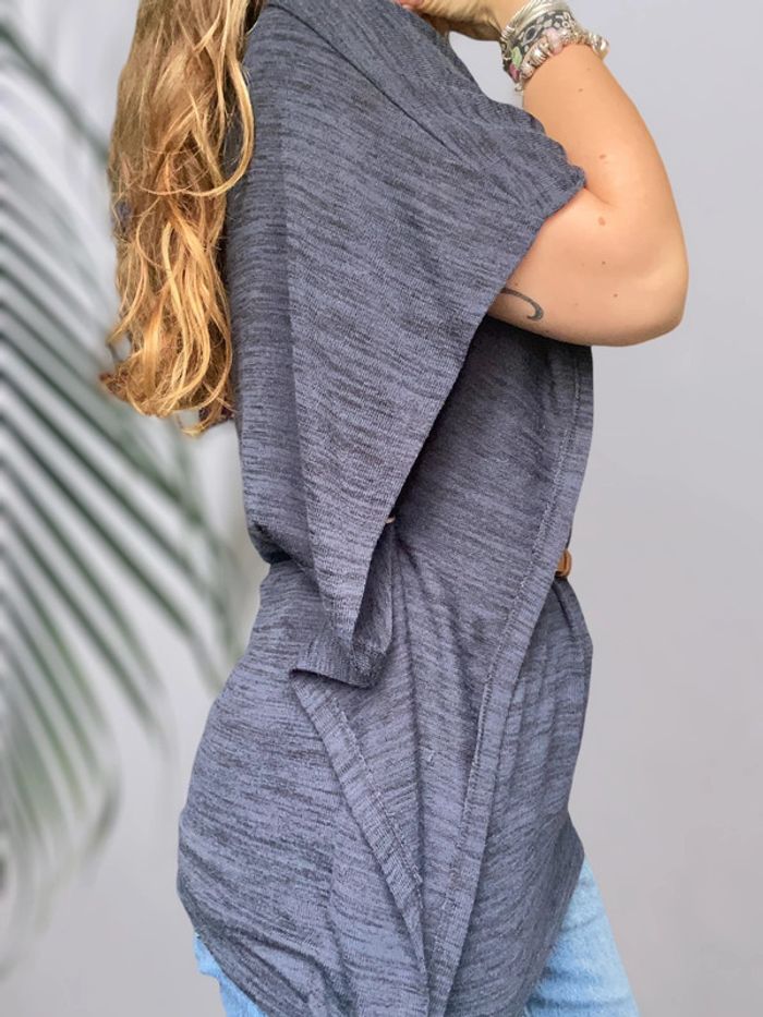 Pull poncho bleu marine avec ceinture brun clair Pimkie taille S très bon état - photo numéro 5