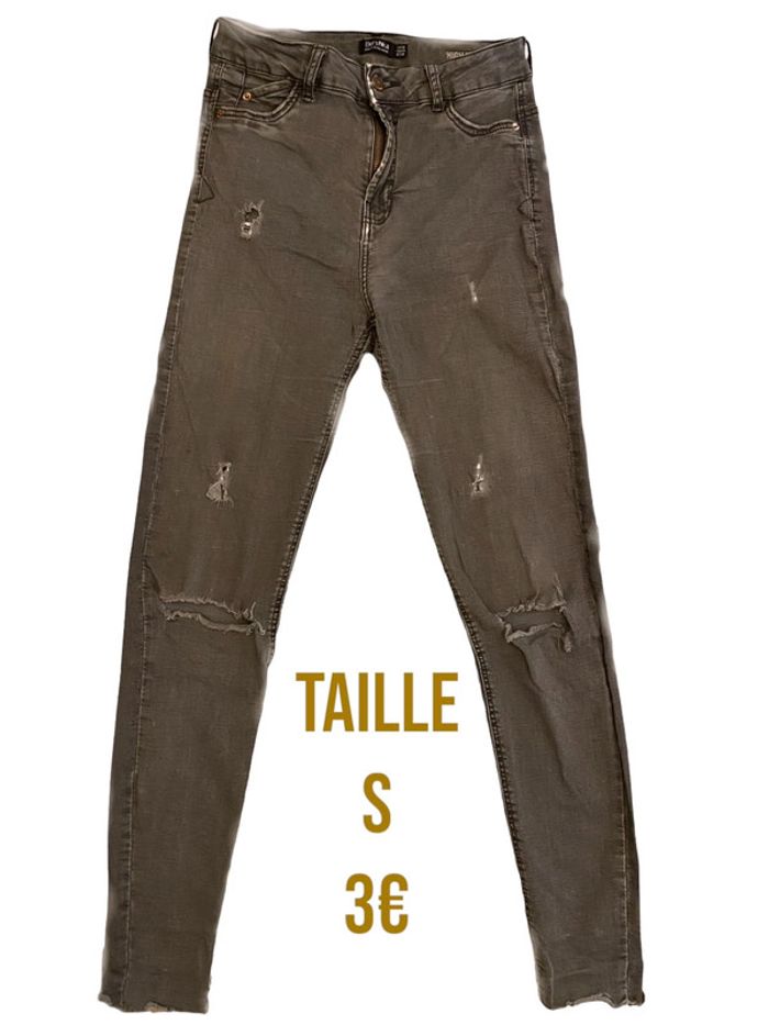Bonjour les filles, je vous présente ce jeans slim 🤍 - Bershka - Couleur gris - Trous sur les genoux - Taille haute - Très bon état : a été recousu à un attache ceinture (voir photo) - Taille S 🤍 MP pour plus d’informations ou de photos. Réduction sur les lots activée. Prix négociable Autres articles en taille S dans mon dressing : #estelledupont96TailleS