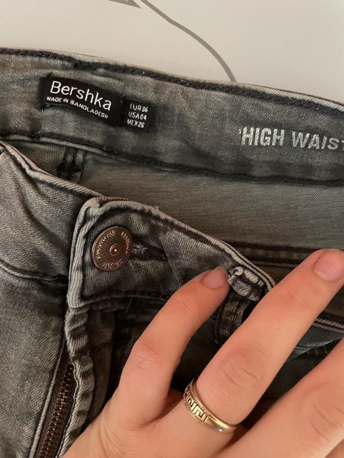 Jeans slim gris fonce taille haute Bershka taille S - photo numéro 1