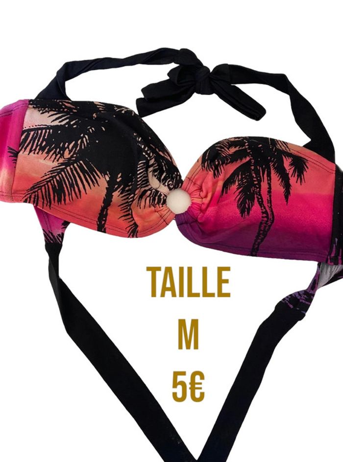 Bonjour les filles, je vous présente ce haut de bikini avec palmiers 💗🖤 - Hunkemöller - Couleurs rose et noir - S'attache par un noeud derrière le cou et derrière le dos - Très bon état - Taille 38 🖤💗 MP pour plus d’informations ou de photos. Réduction sur les lots activée. Prix négociable Autres articles en taille M dans mon dressing : #estelledupont96TailleM
