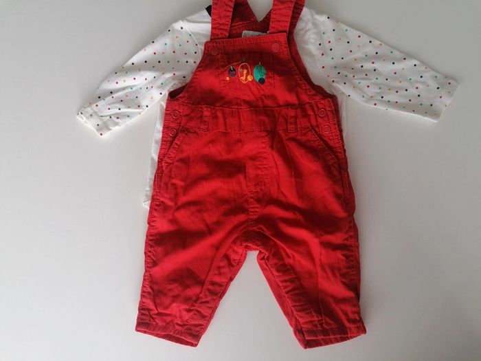 Jolie ensemble salopette orange rouge et sous pull Idée cadeau naissance... 👶 Garçon Taille 3 mois Orchestra bébé