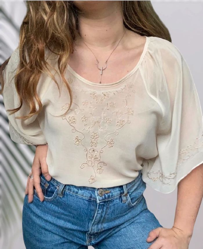 Tunique bohème crème avec fleurs brodées Forever 21 taille S très bon état - photo numéro 1