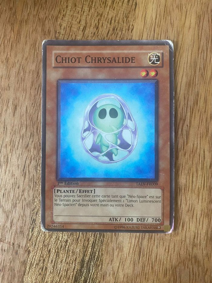 Carte Yu-Gi-Oh! Chiot chrysalide TAEV-FR009 1ère édition Français 1996 N’hésitez pas à faire un lot pour profiter de réductions ✨ Autres cartes Yu-Gi-Oh! dans mon dressing : #estelledupont96Yugioh