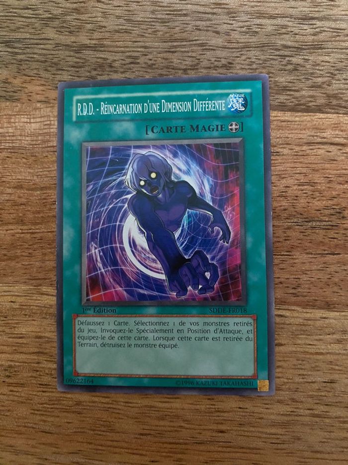 Carte Yu-Gi-Oh! R.D.D. - Réincarnation d’une dimension différente SDDE-FR018 1ère édition Français 1996 N’hésitez pas à faire un lot pour profiter de réductions ✨ Autres cartes Yu-Gi-Oh! dans mon dressing : #estelledupont96Yugioh